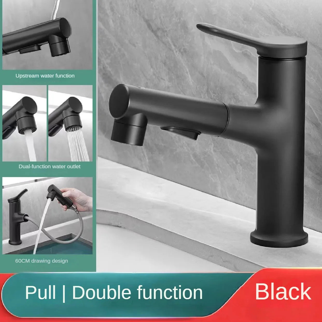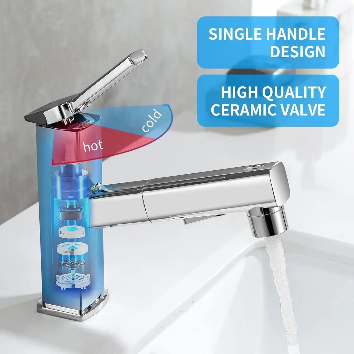 Bathroom Pull Out Taps with Pull Down Spray, Swivel Spout Faucet