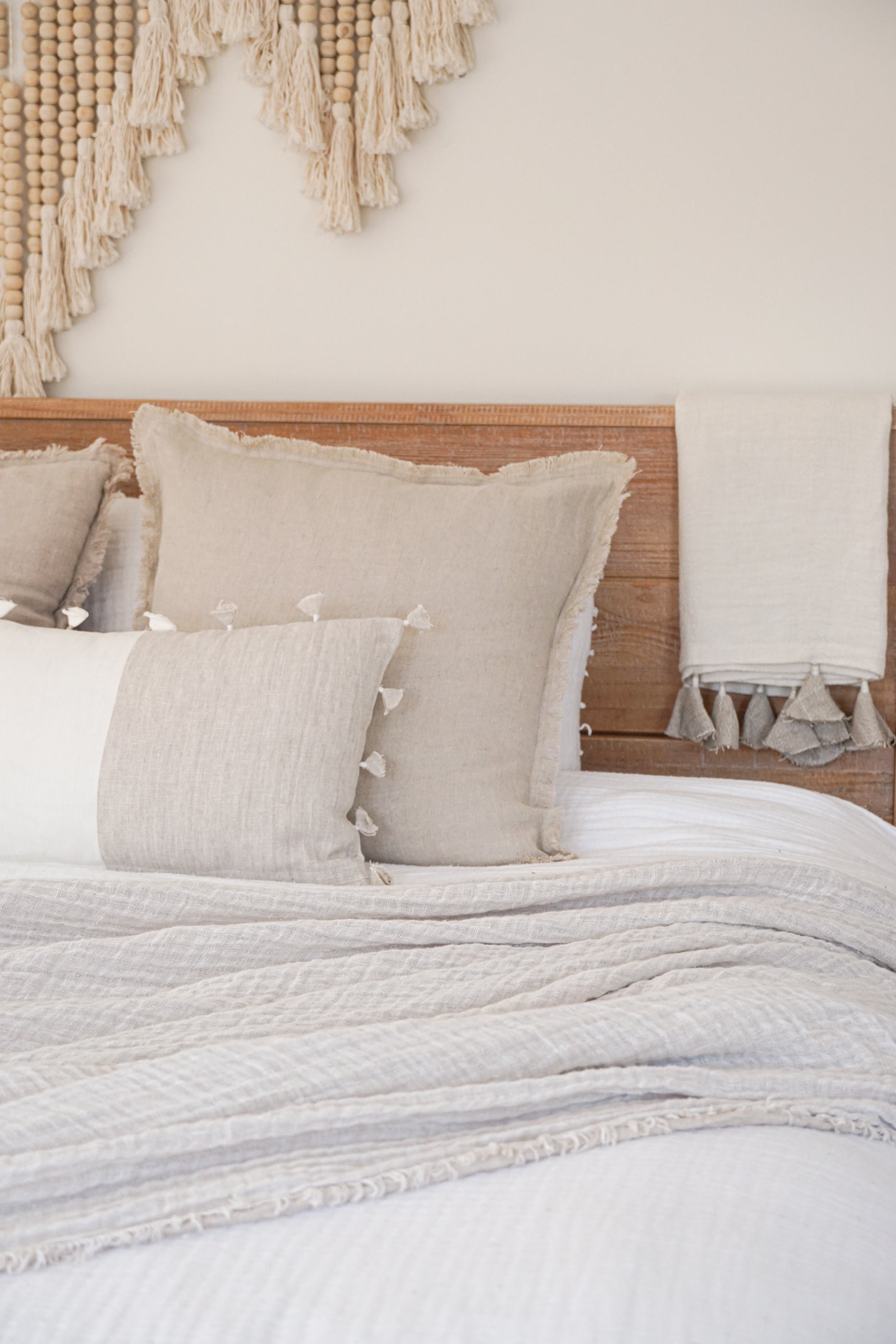 Our Beige So Soft Linen Pillow is Soo soft- you won’t believe it's linen! This yarn has a slight nub which gives it a beautiful natural texture. Edges have a self-fringe on all sides.