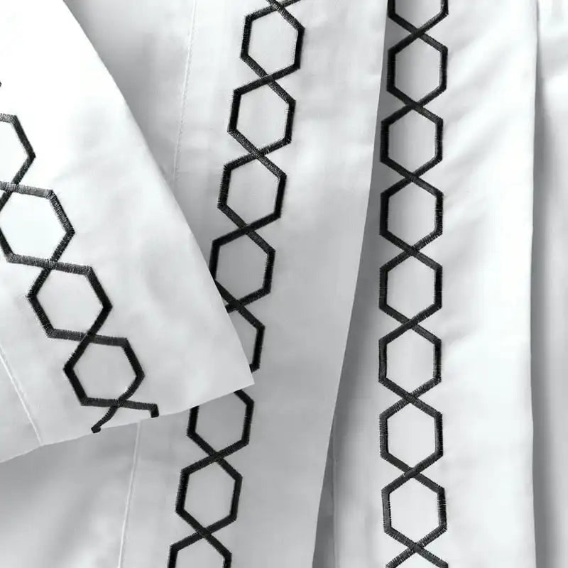 The Striped Geo Bed-in-a-Bag Set brings a contemporary style to your bedroom with black, grey and white peached polyester pieced striping, embellished with rich geometric embroidered details. Along with a comforter, 2 shams, 2 shams, a bedskirt and 2 decorative pillows, this set features a 4 piece cotton rich sheet set plus 2 additional bonus pillowcases all with coordinating embroidered hem designs. You can be confident that you will enjoy a stylish, cozy adult bed-in-a-bag comforter ensemble for your space at a .