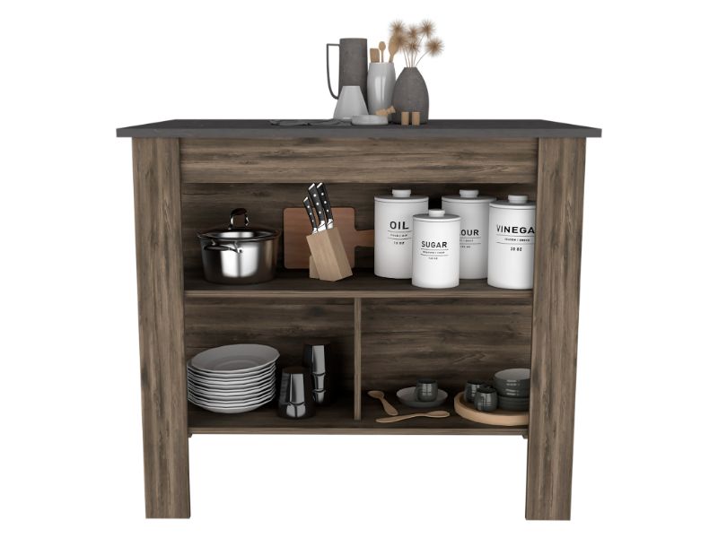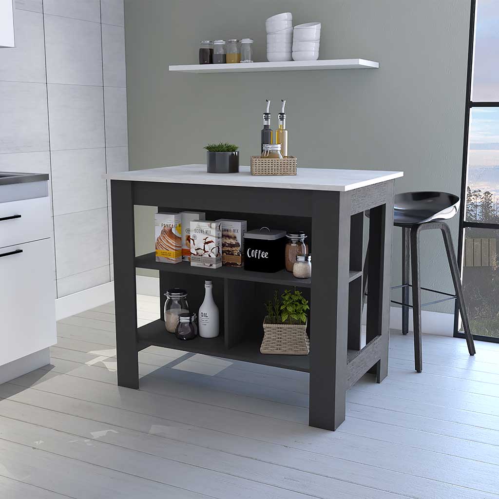Brooklyn Kitchen Island, Three Concealed Shelves, Four Legs by FM FURNITURE