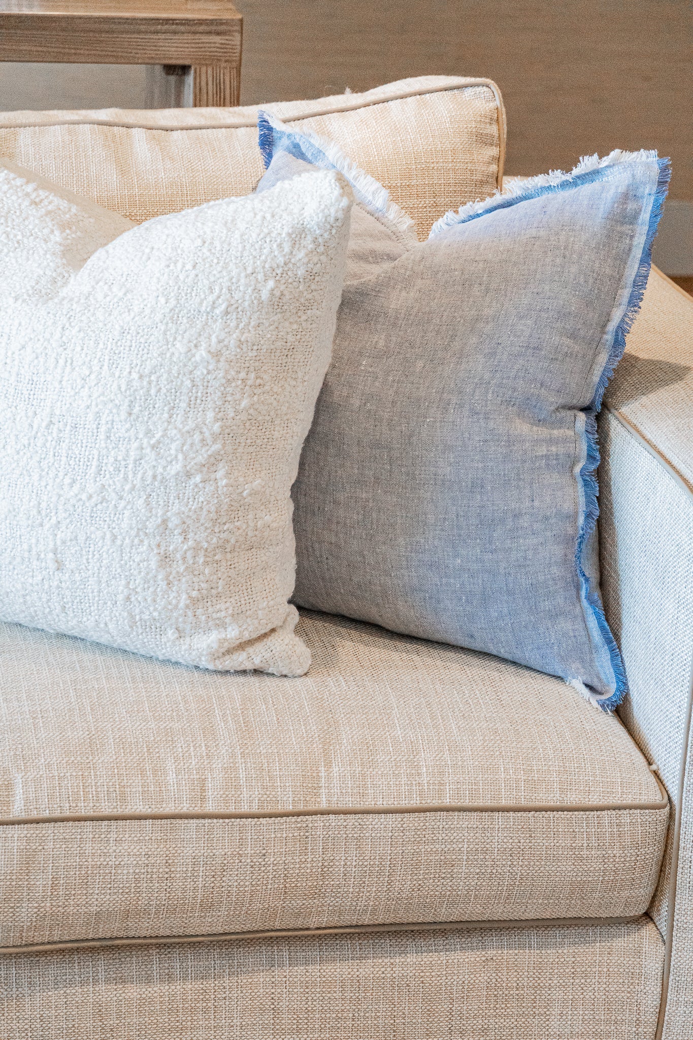 Our Chambray Blue So Soft Linen Pillow is Soo soft- you won’t believe it's 100% linen! This yarn has a slight nub which gives it a beautiful natural texture. Edges have a self-fringe on all sides.