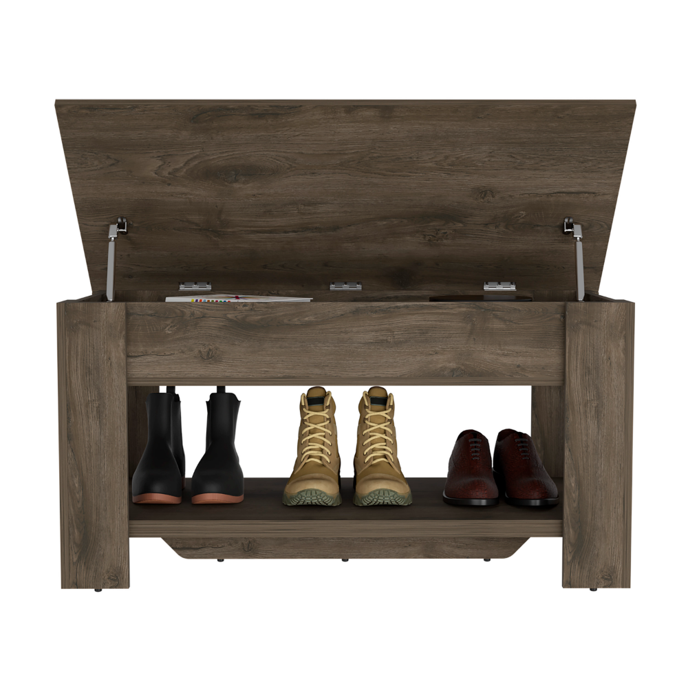 Daffodil Storage Table, this piece of furniture is perfect for your room or wherever you want to accommodate it. It is lightweight and very ergonomic. You can store books, notebooks, and many more. The Daffodil storage table is the perfect replacement if you don't want a traditional nightstand. This piece of furniture features a liftable top with a storage space of 37.3" W x 20" D x 5" H and a lower panel that can be used as a shoe rack. Designed with elegant light oak-white and dark Brown manufactured wood finish.