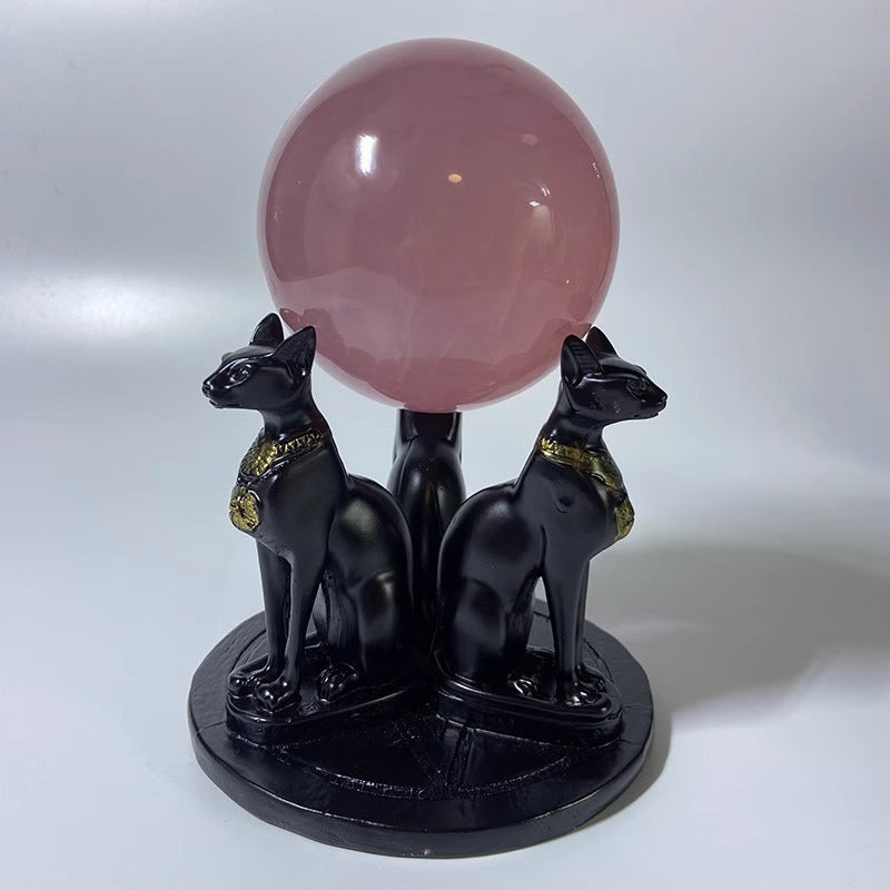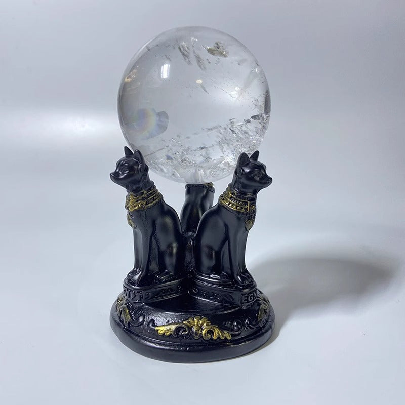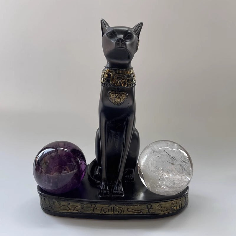 Egyptian Goddess Bastet Cat Statue with Crystal Ball Stand