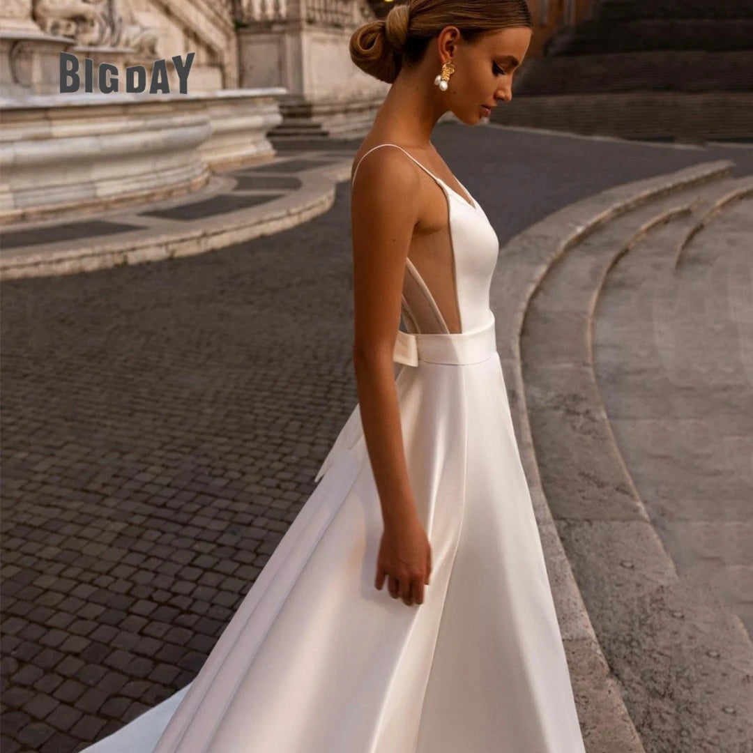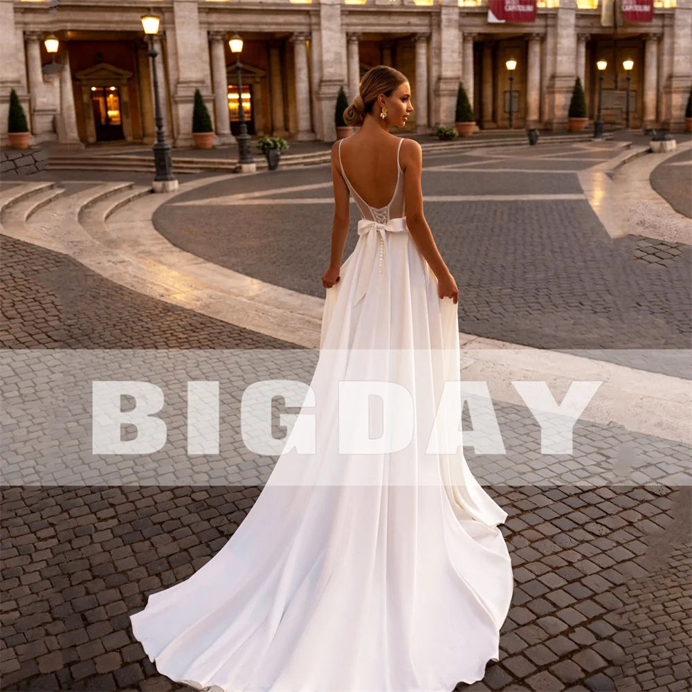 Elegant Wedding Dress For Woman Sweetheart-Neck A-Line Spaghetti Straps Open Back Bride Gown Train