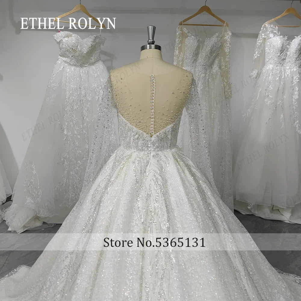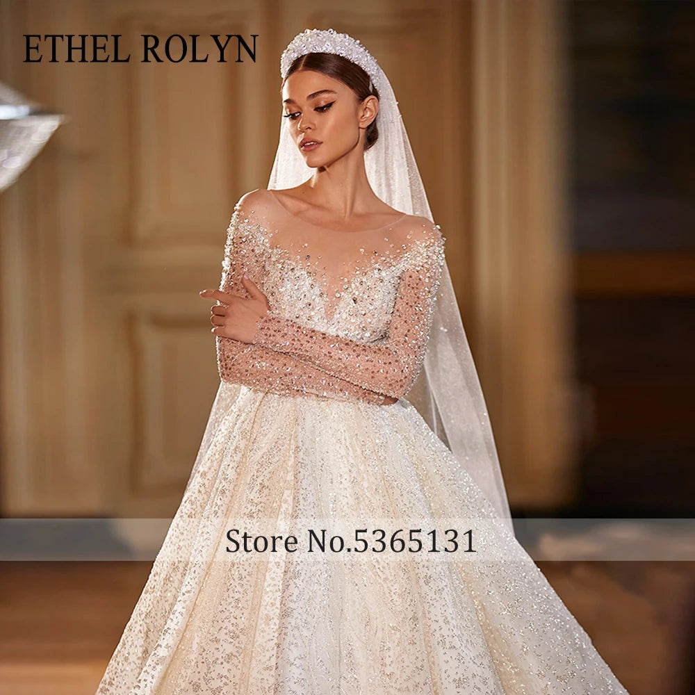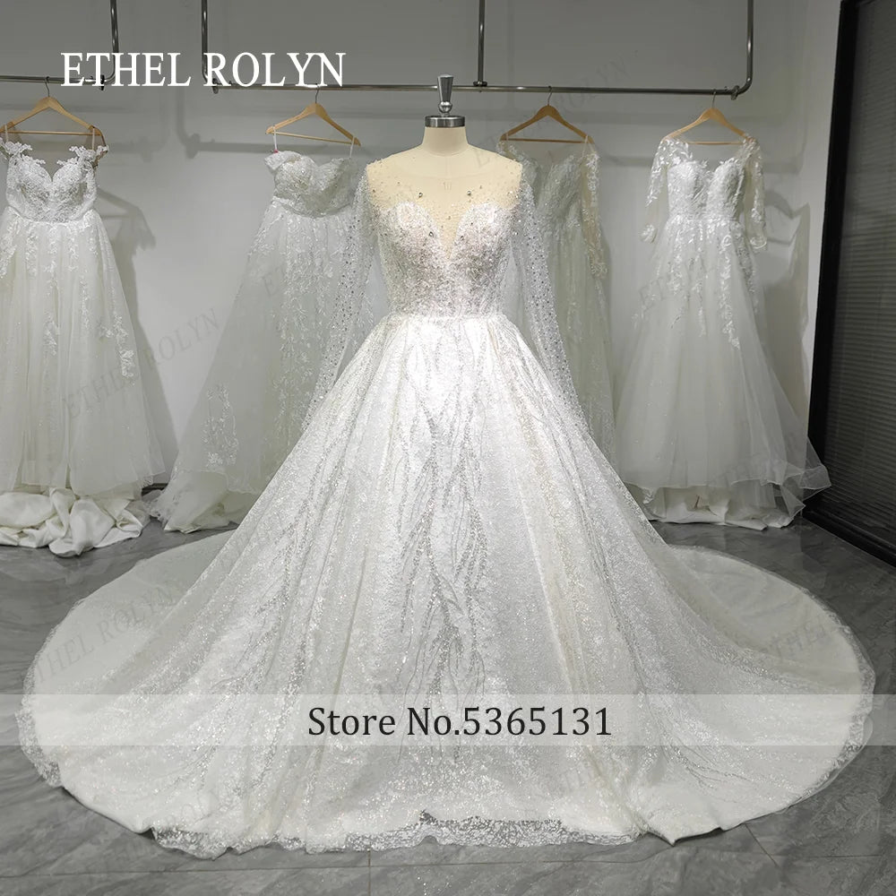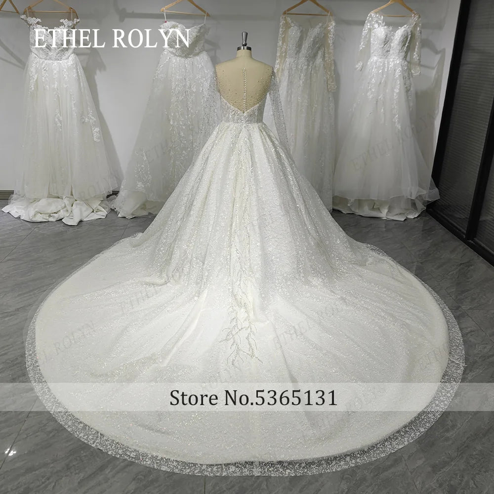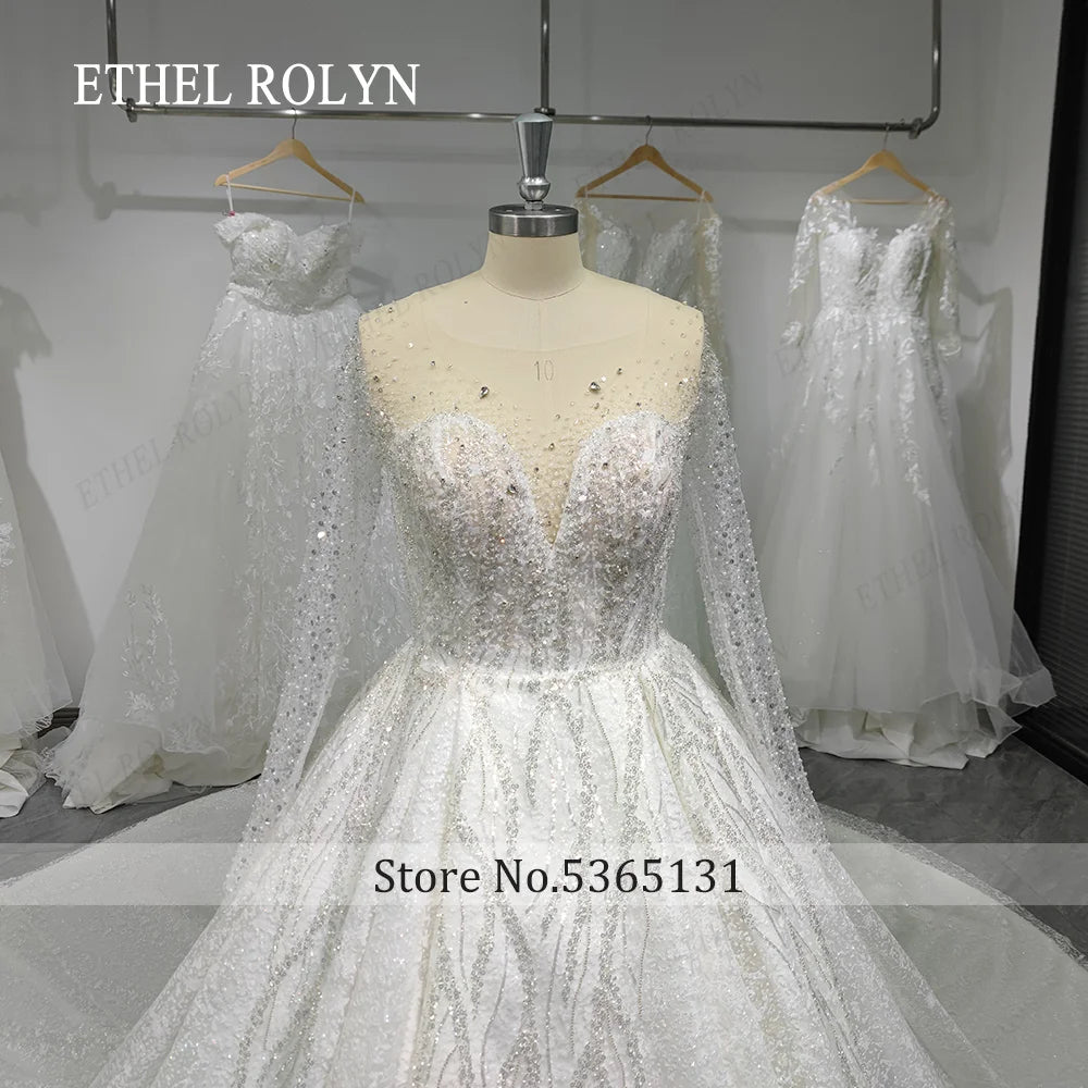 ETHEL ROLYN Luxury Wedding Dress Glitter Long Sleeve Princess Sweetheart Backless Bridal Gown