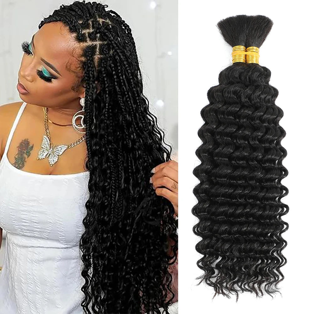 Human Braiding Hair for Boho Braids Human Hair Braiding Hair 100g Curly Boho Hair for Braiding Knotless 12A Deep Wave Bulk Hair