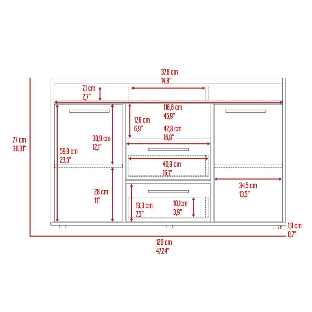 Ilumina Sideboard, Double Door Cabinet, Two Drawers, One Open Shelf