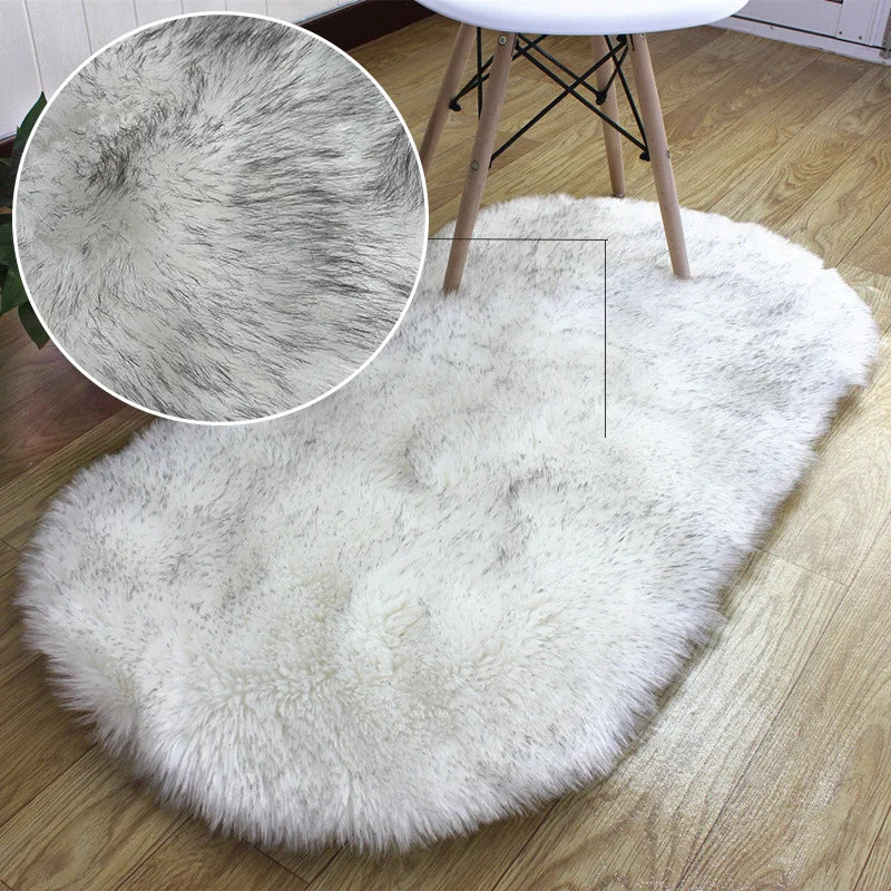 Oval Soft Fluffy Faux Sheepskin Area Rug