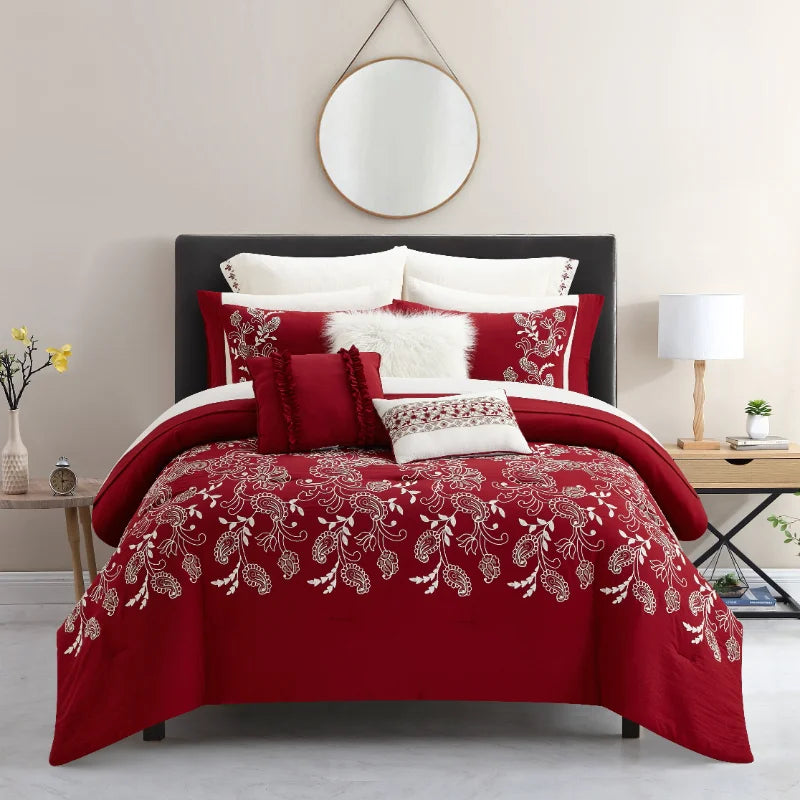SET INCLUDES: 1 Comforter, 2 Shams, 1 Fitted Sheet, 1 Flat Sheet, 3 Decorative Pillows and 4 Pillowcases = 12 Piece Bedding Set