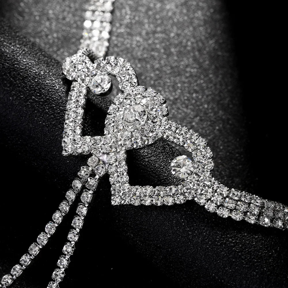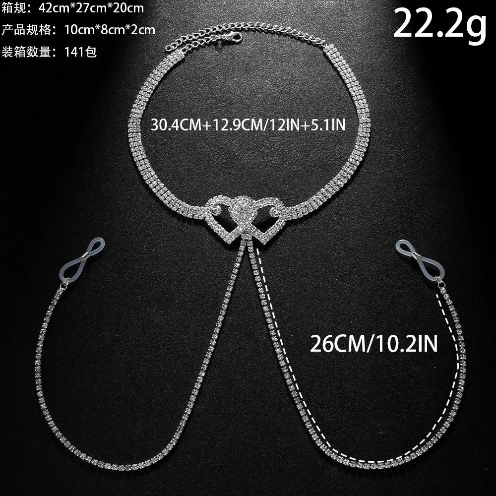 Sexy Double Heart Rhinestone Chain Necklace for Women