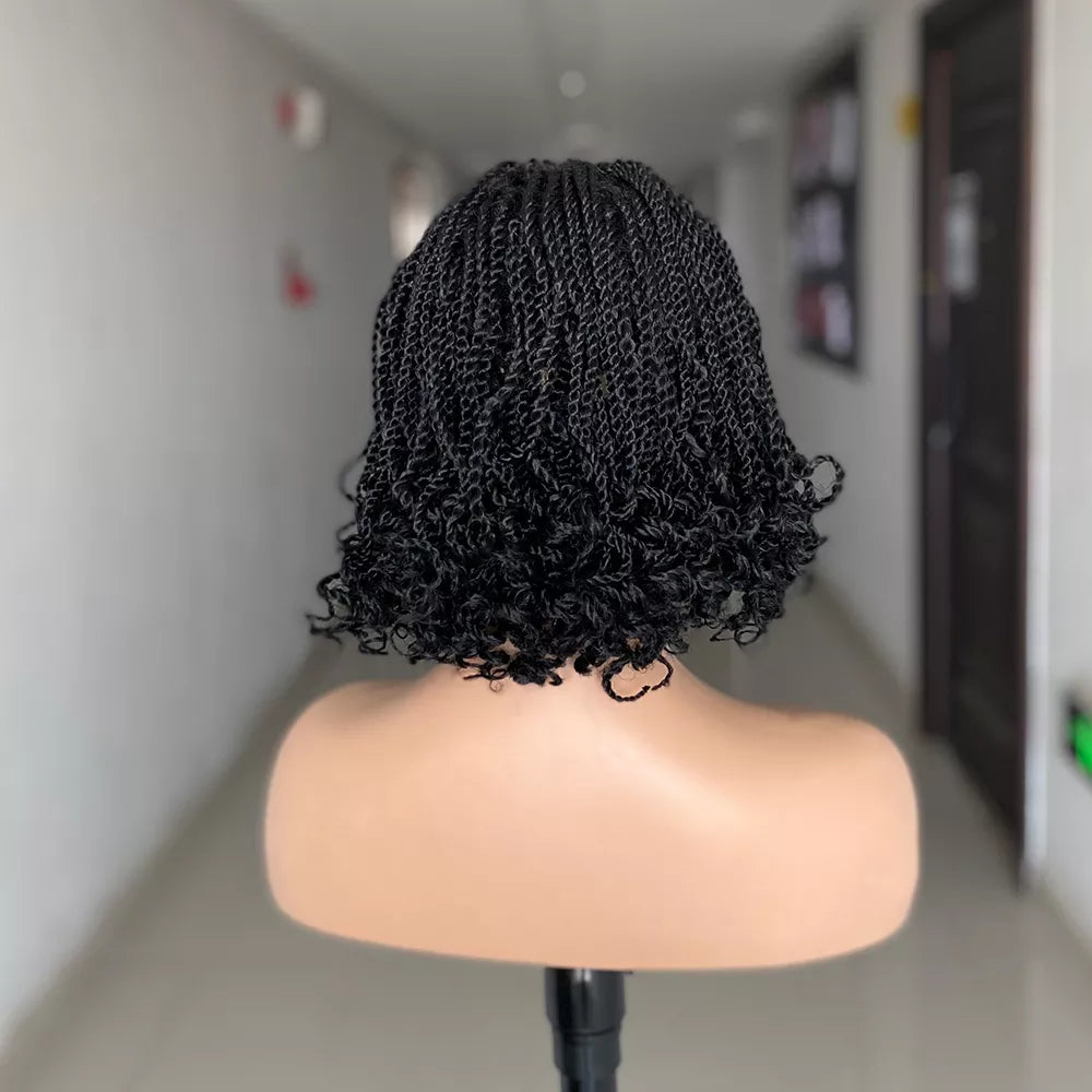 Synthetic Box Braided Heat Resistant Crochet Braided Short Kinky Twist Wig