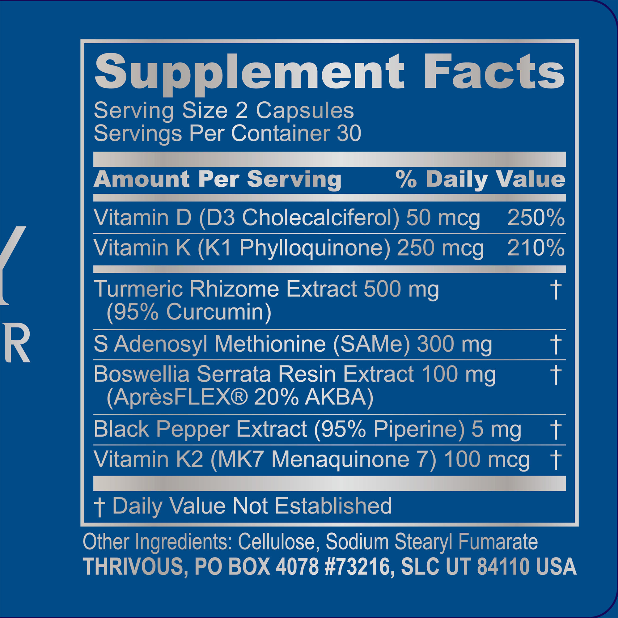 Tenacity Arthroprotector is an advanced supplement to enhance joint and bone function for better aging. Each is a month supply (60 capsules) of the best natural geroprotectors, with clinical doses of ApresFlex® Boswellia Serrata, S Adenosyl Methionine (SAMe), Turmeric Curcumin, Vitamin D3, and Vitamin K2 MK7.