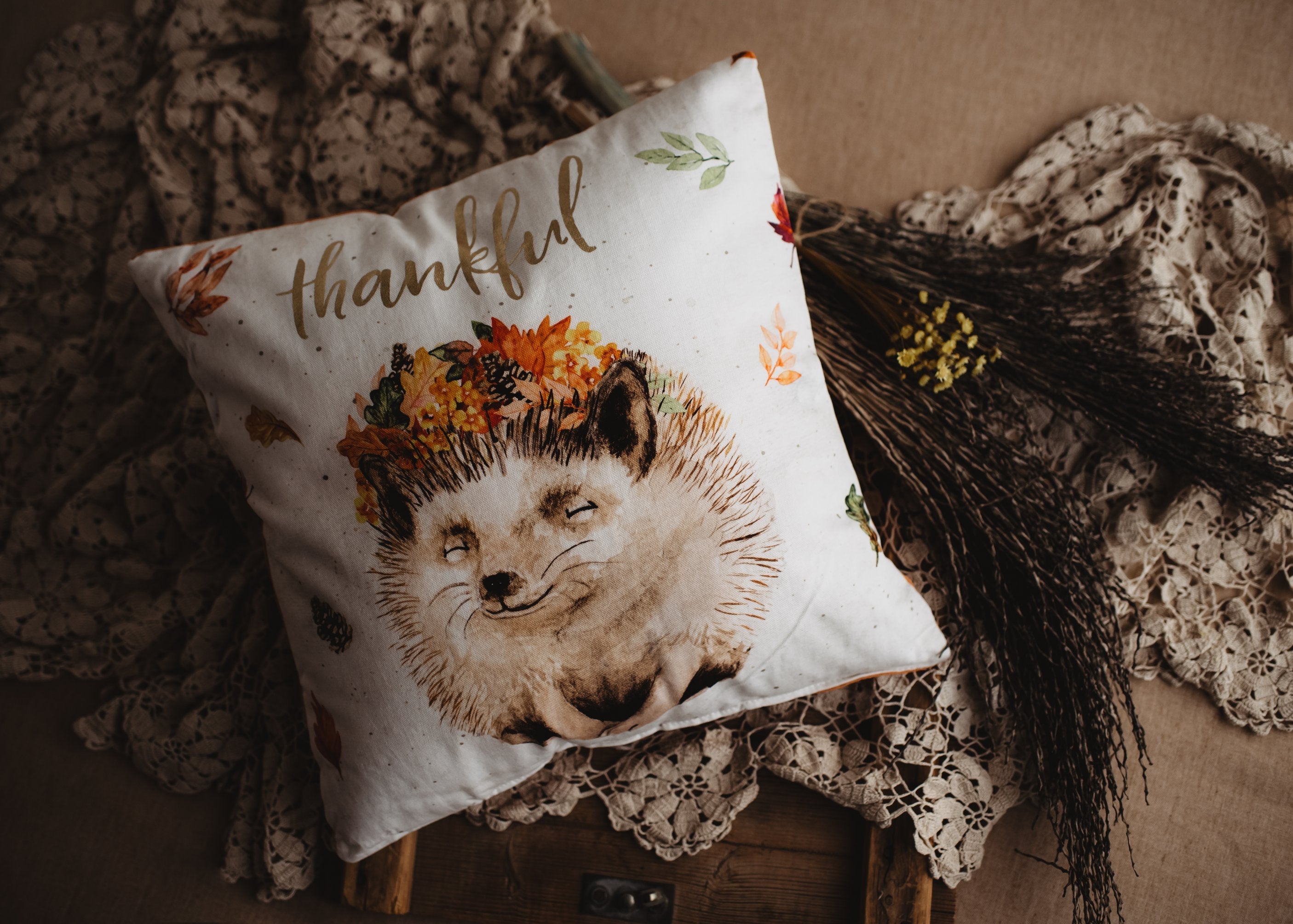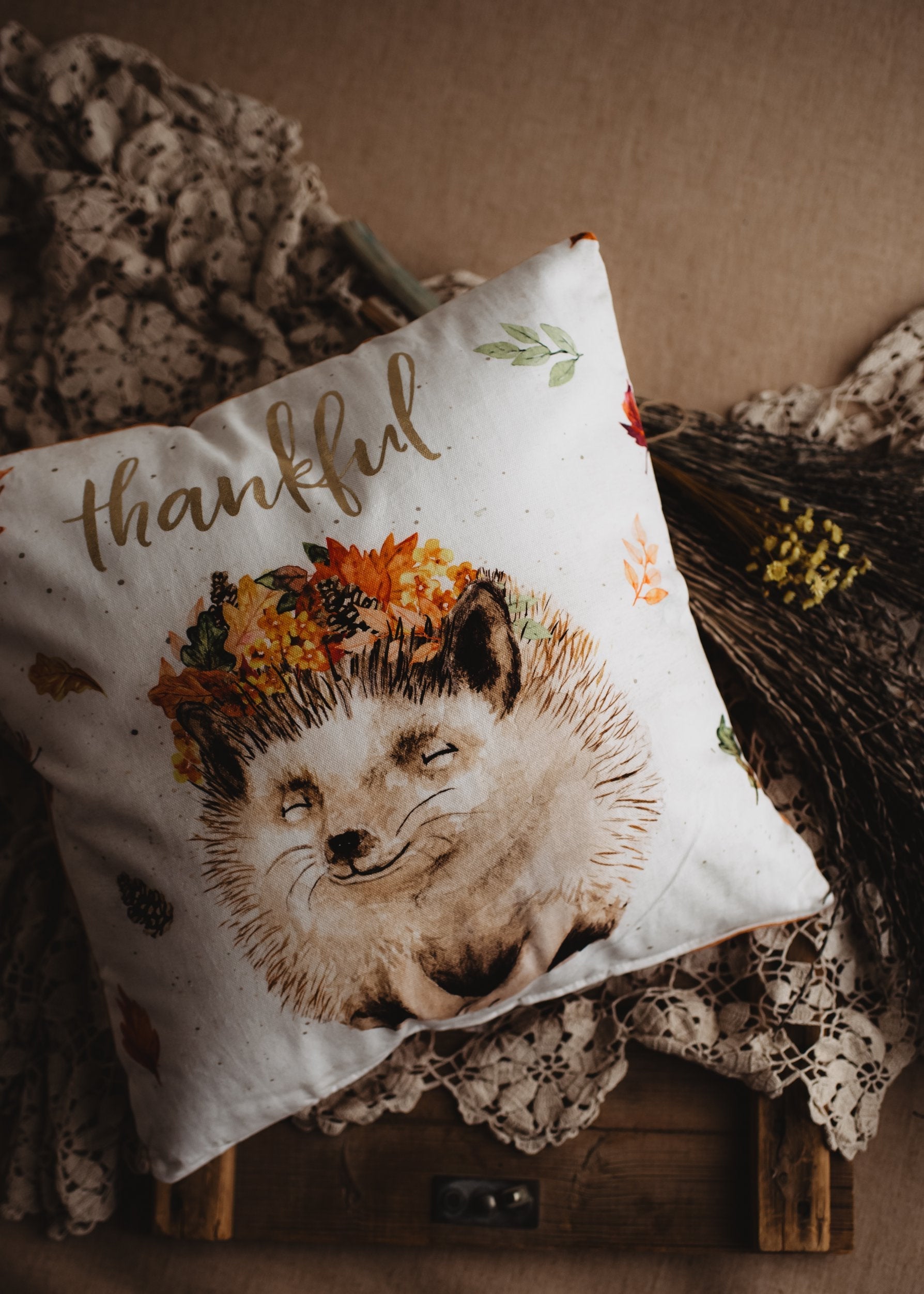 Thankful Hedgehog | 16x16 Throw Pillow Cover