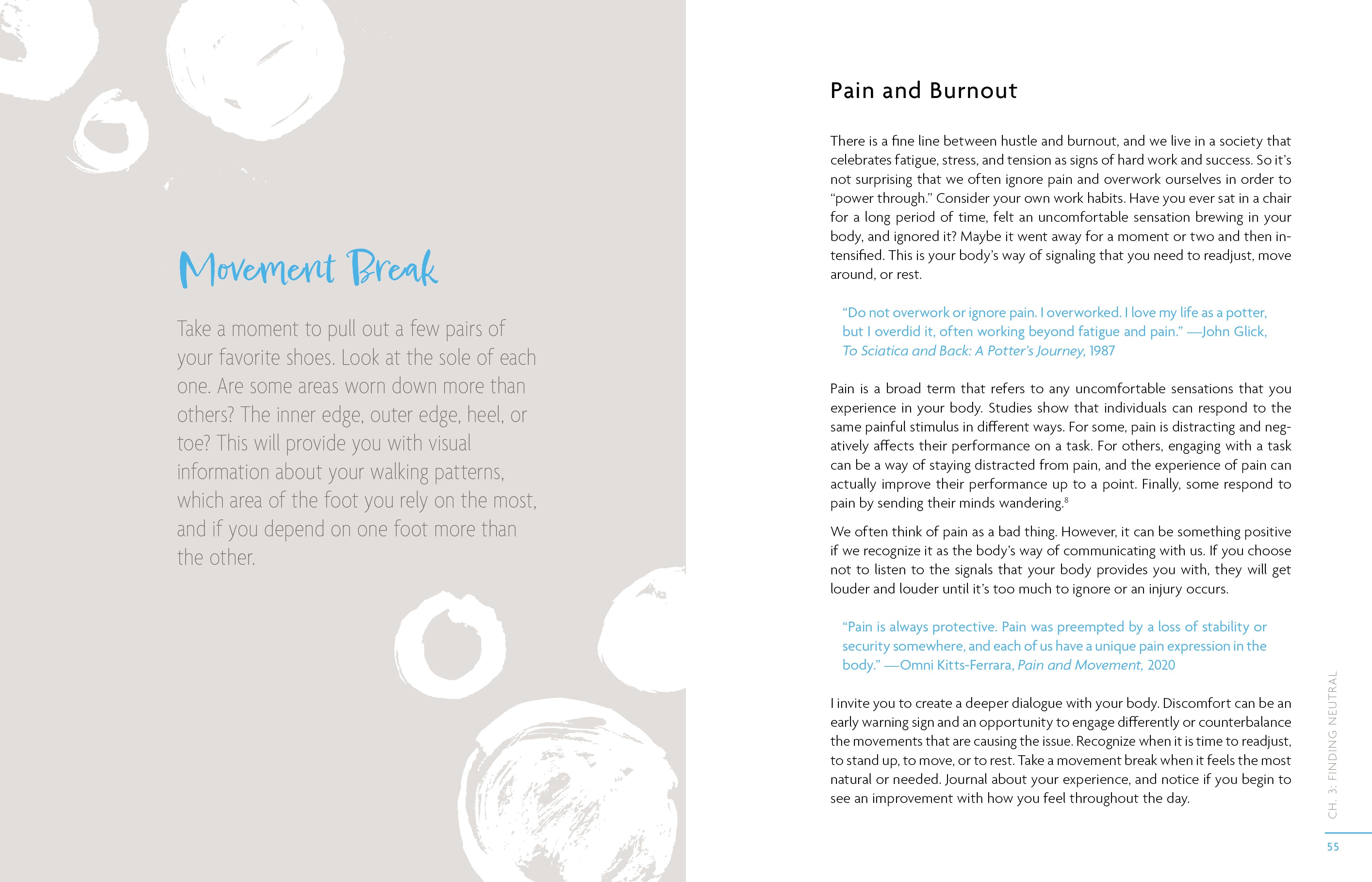 [AuthorName]By Missy Graff Ballone[/AuthorName][AuthorBio]Missy Graff Ballone is the founder of Wellness for Makers®, an organization dedicated to empowering artists through education, mindful living, and movement. She is licensed in bodywork methods and passionate about helping artists locate and share wellness resources. Missy lives in Hudson Valley, NY. www.wellnessformakers.com[/AuthorBio][NumIllustration]75 color photos & images[/NumIllustration][CoAuthor][/CoAuthor][SubTitle]A Movement Guide for Artists[/SubTitle][ColorPattern]75 color photos & images[/ColorPattern]