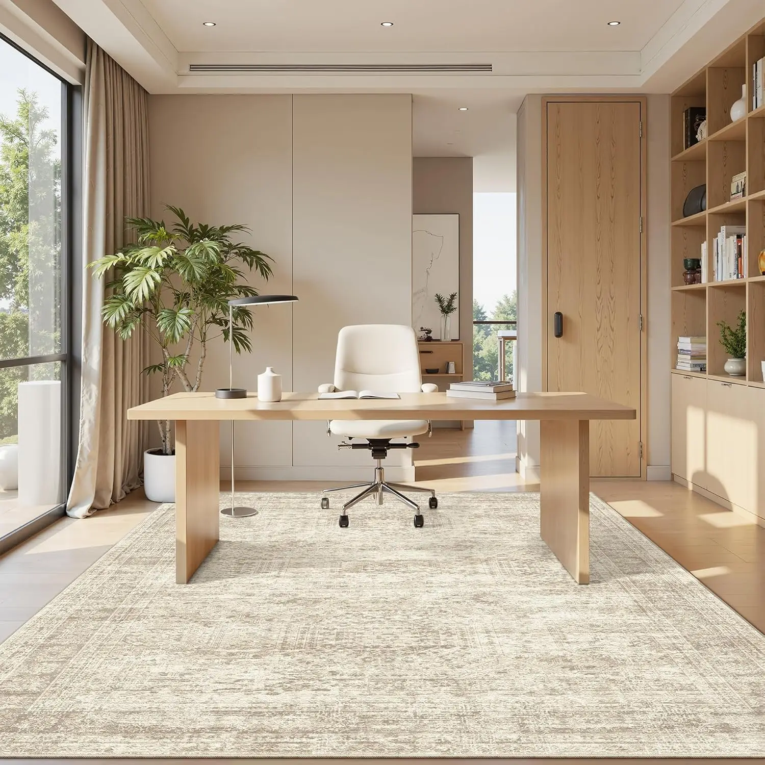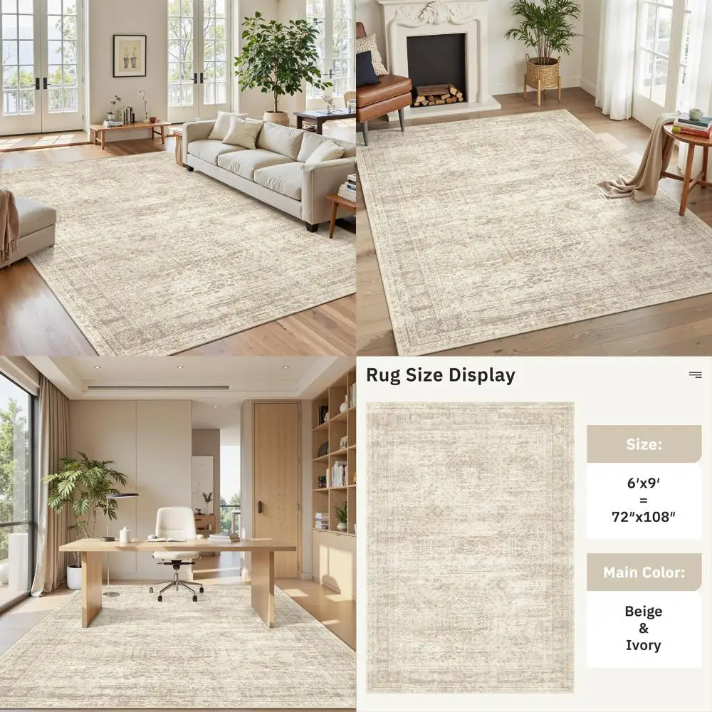 Modern Beige Indoor Washable 6x9 Area Rug with Non-Slip Feature