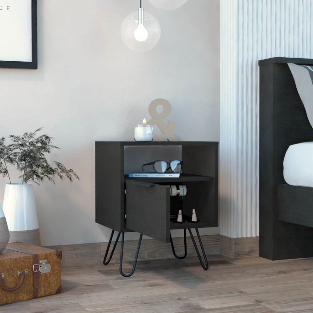 Vienna Nightstand, Two Shelves, Single Door Drawer by FM FURNITURE