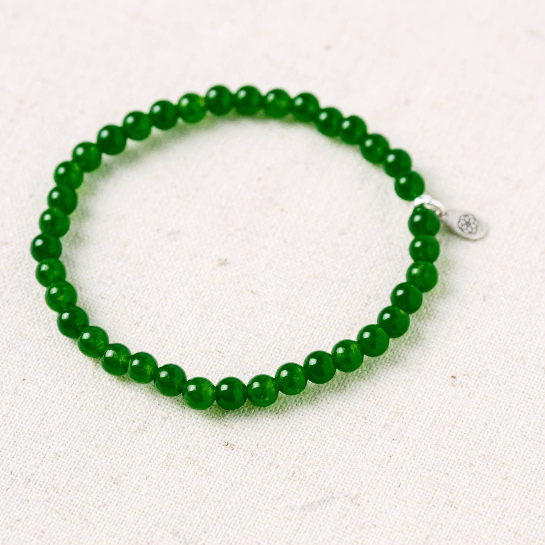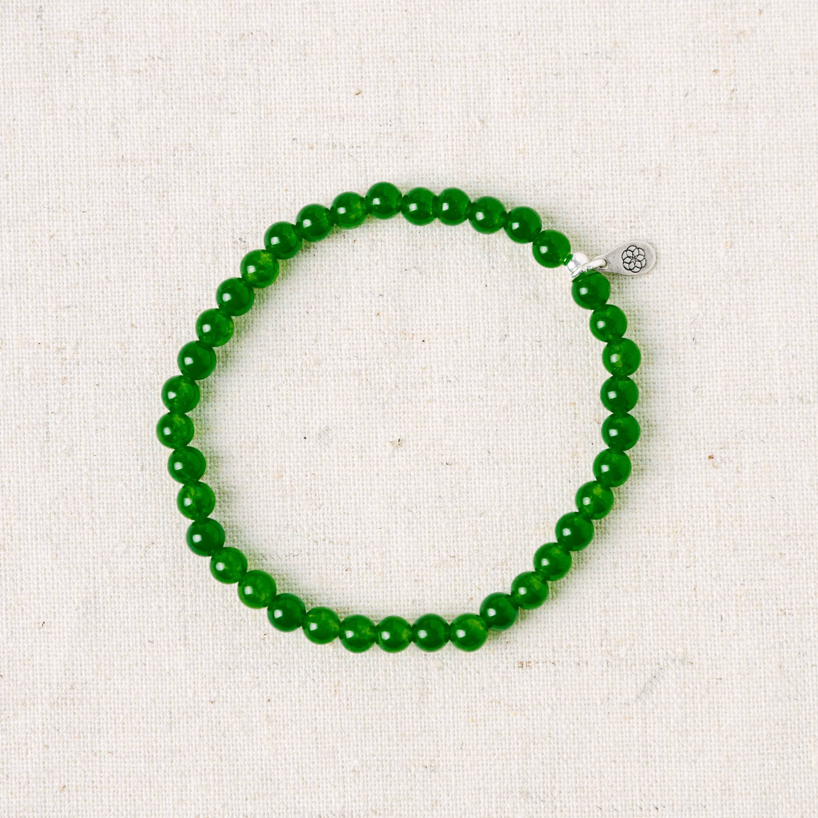 Cool to the touch, able to calm with a glance, and celebrated for bringing swathes of good luck – the Green Jade Energy Bracelet has a long history of being a deep healing stone. Awash in the color of Mother Nature, Green Jade is just like a plant – drinking down sunlight so she can send out positive vibrations of prosperity, health and wealth to the world.