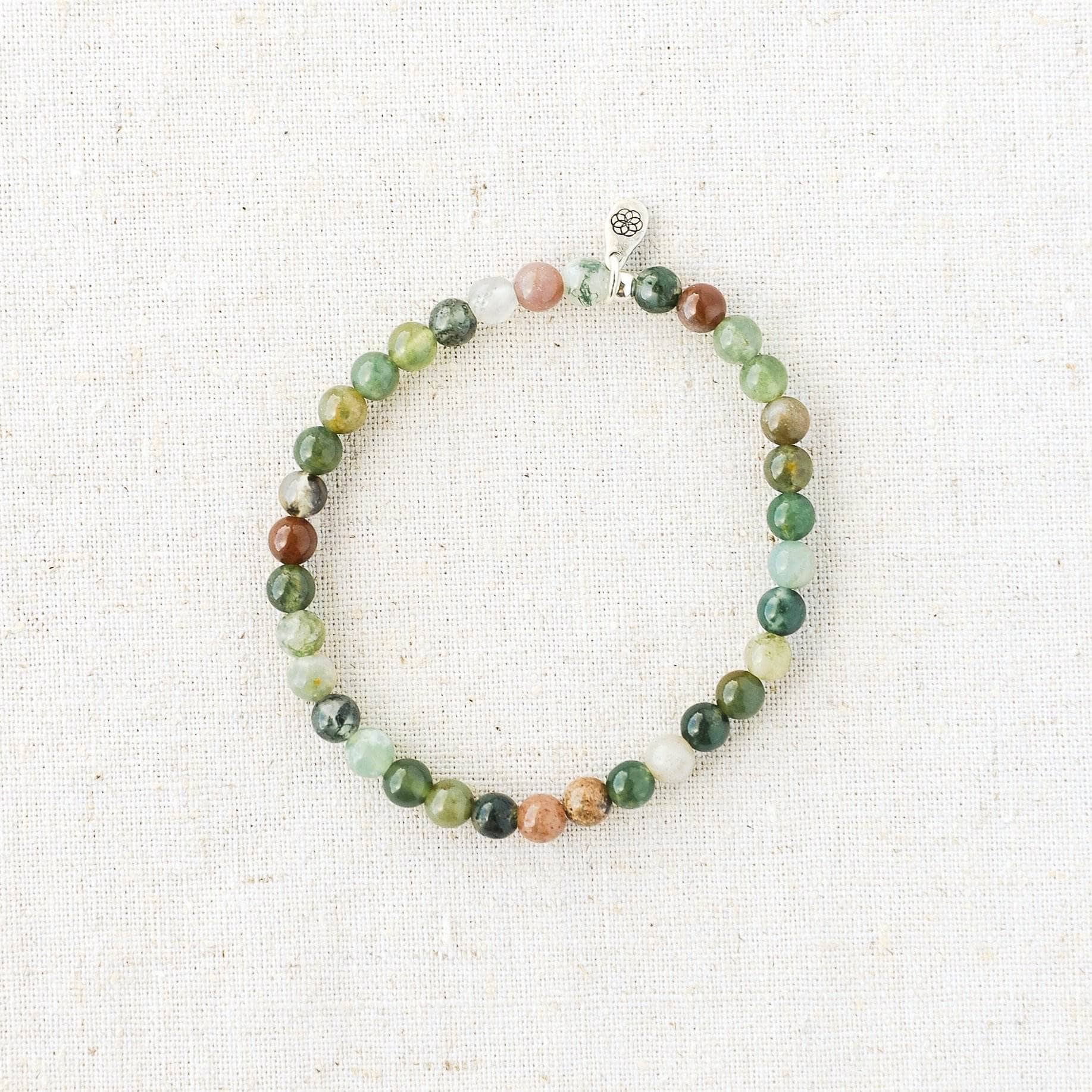 A secret weapon used by sages, our Indian Agate bracelet ensures you keep one foot on the floor even when leaping towards greatness — all thanks to its solid grounding properties. Born from the depths of the Indian Mountains beneath the light of a full moon, the Indian Agate is equal measures earth and sky. A sacred gift from nature, this stabilizing stone keeps your yin and yang in check, balancing out that need to be soft and still with that desire to push towards your full potential.