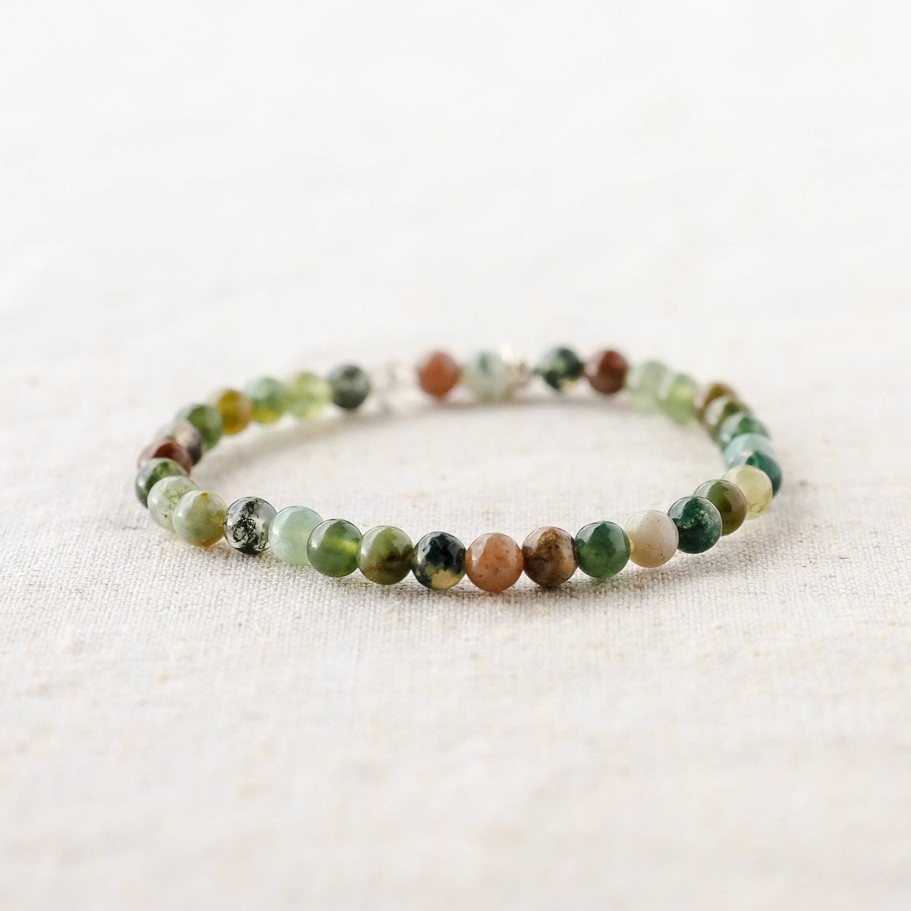 As a heart and sacral chakra stone, the Indian Agate bead bracelet calms anxious thoughts, honing concentration, and nudging you to step out of the chaos of negativity. Wearing this bracelet invites you to heal anger, creating a sense of safety and security wherever you go and ultimately putting you in a place of self-acceptance and higher consciousness.