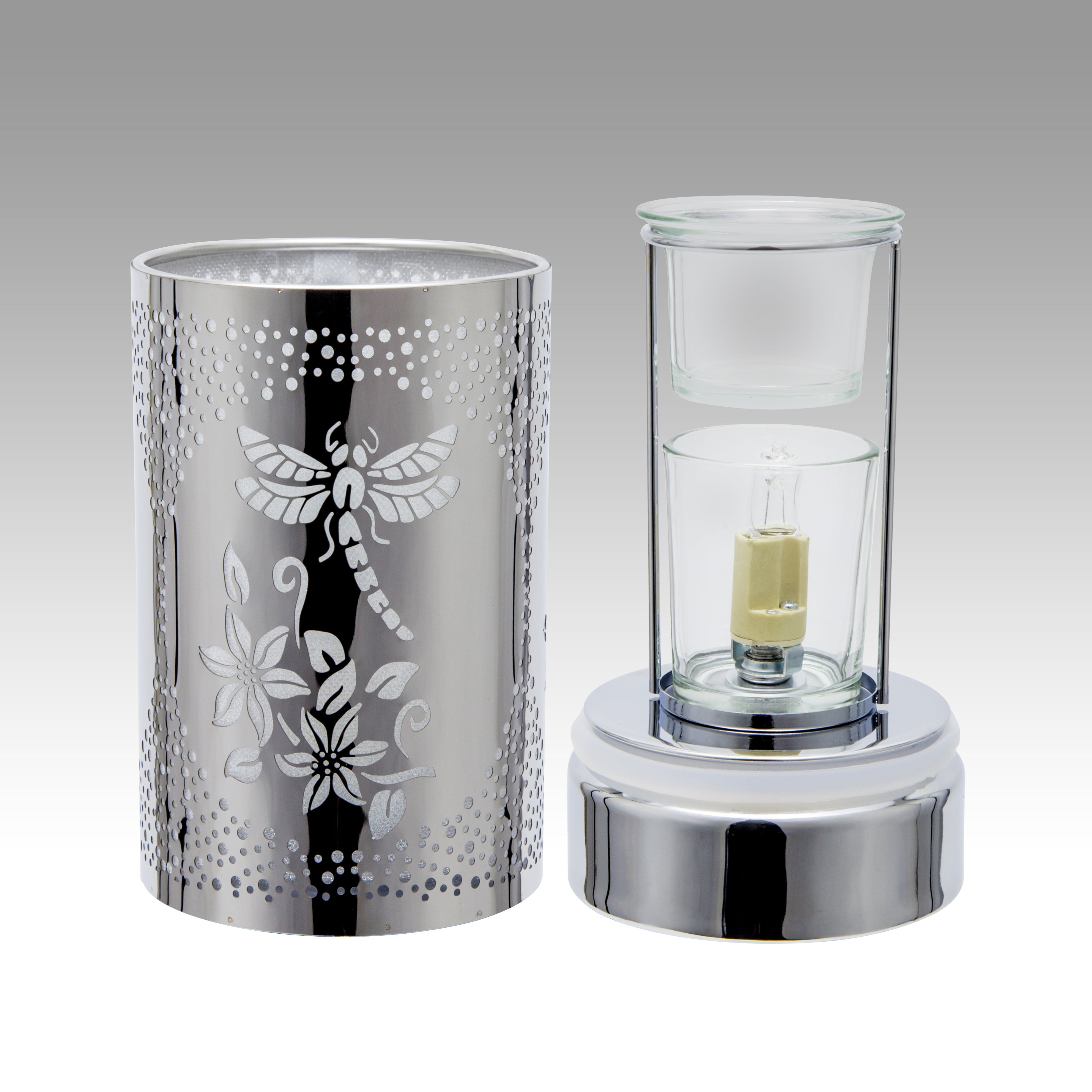 7" touch lamp-Fragrance Wax Melts Warmer -Electric Candle Essential Oil Burner-Metal Silver Dragonfly by Peterson Housewares & Artwares