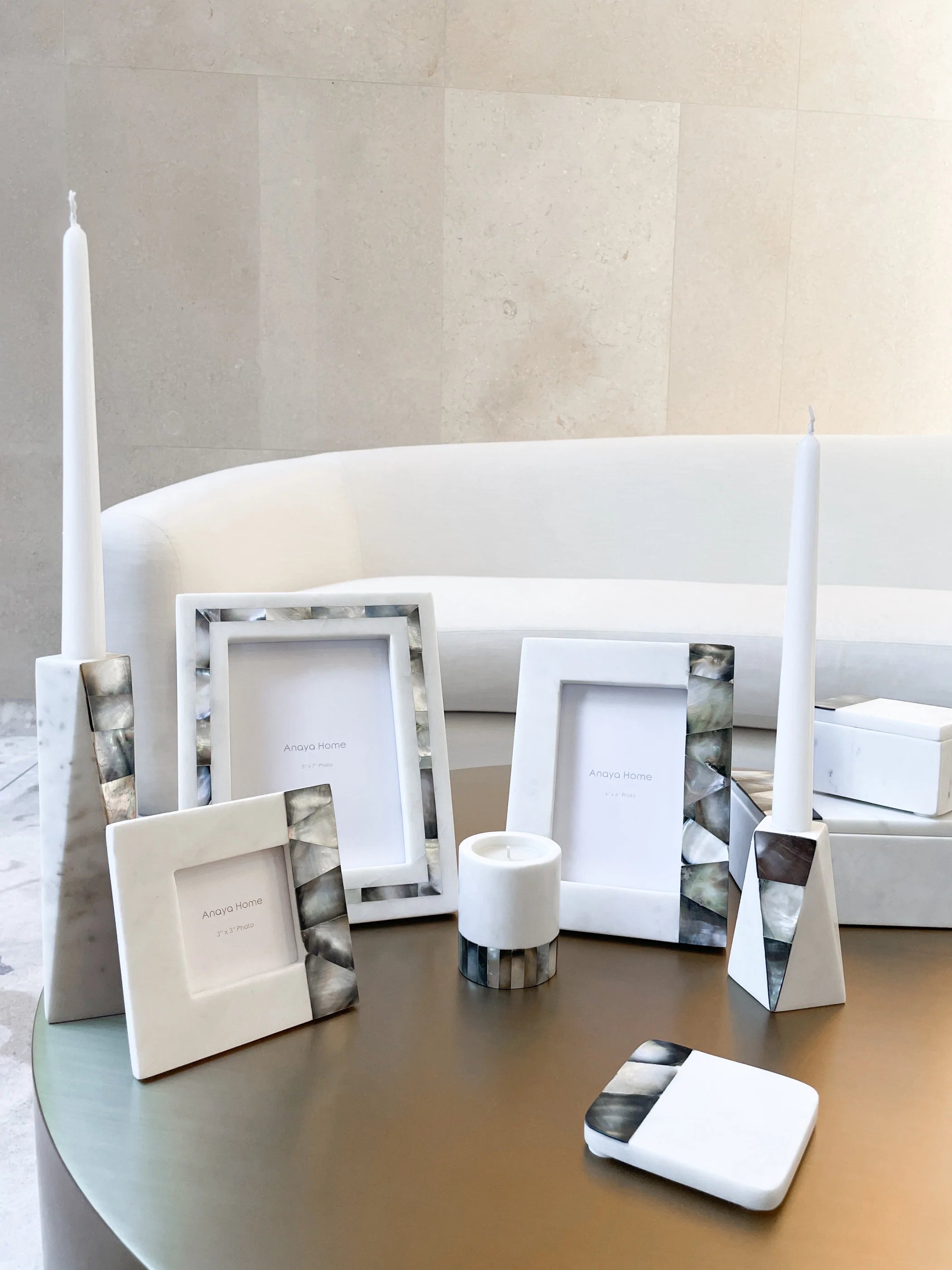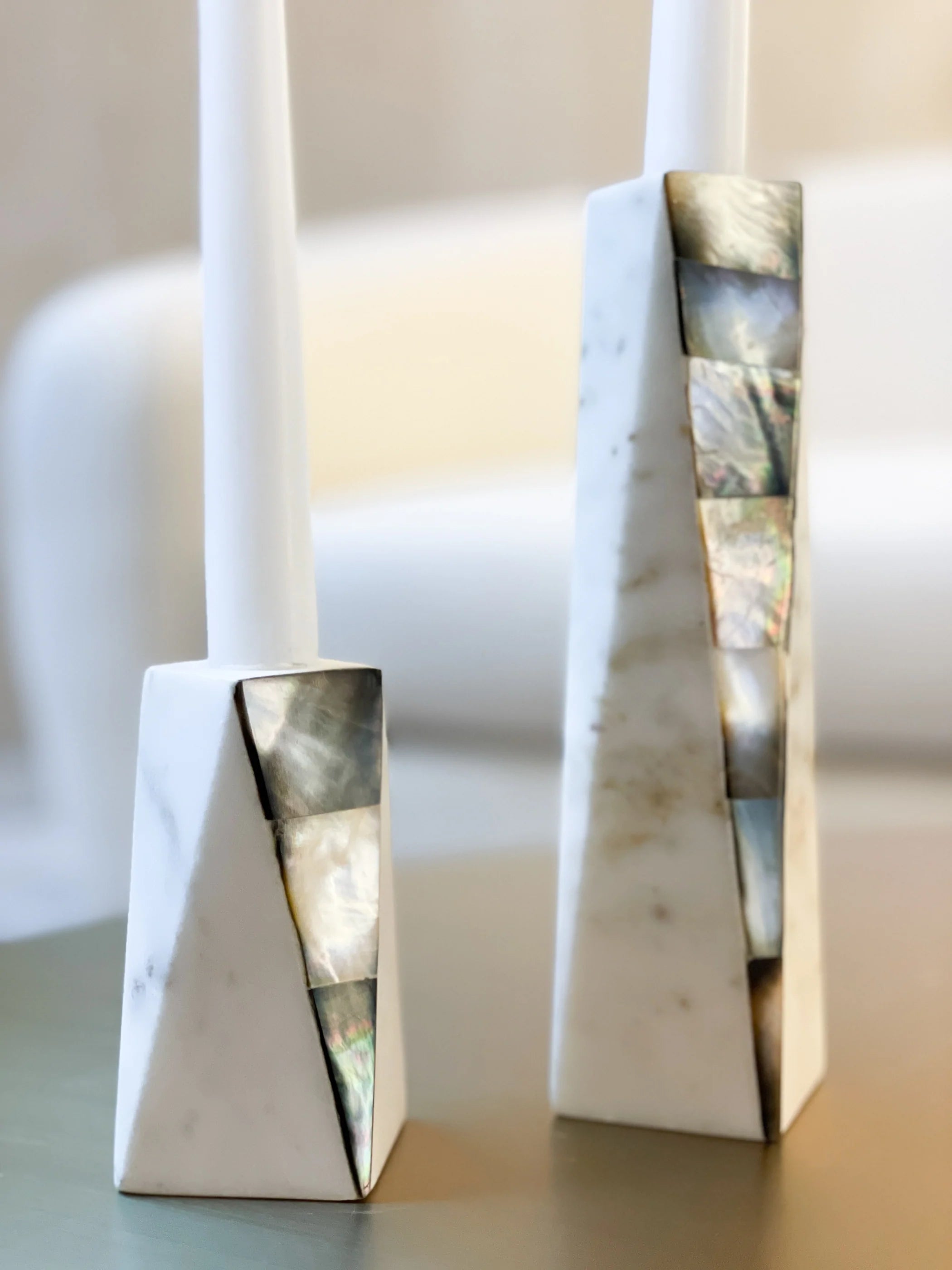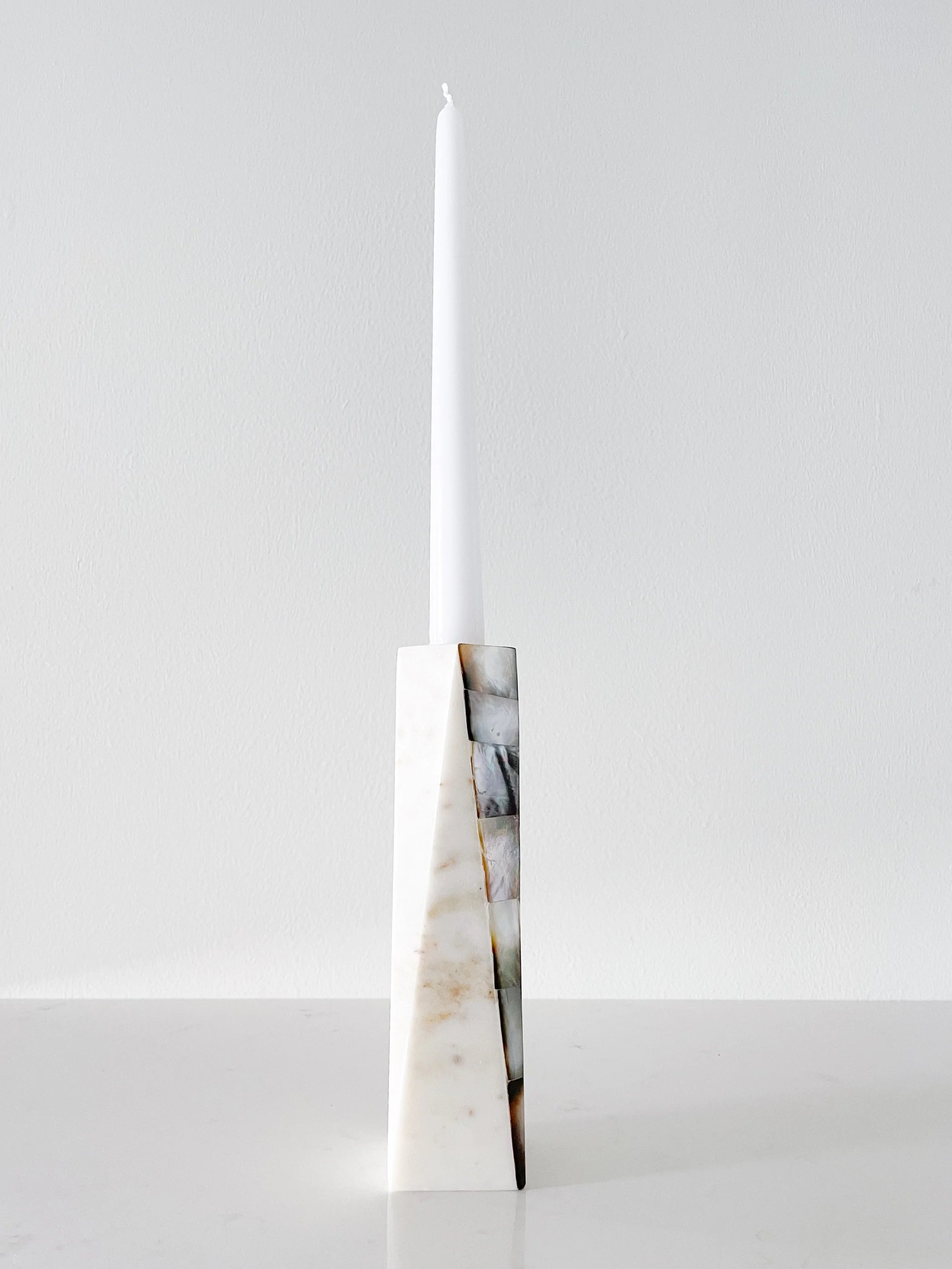 White Marble Grey Mother of Pearl Candle Holders by Anaya