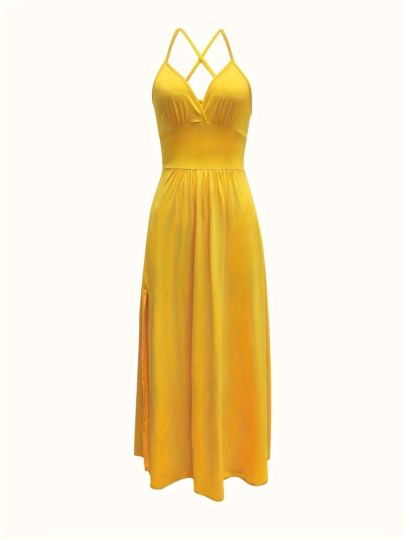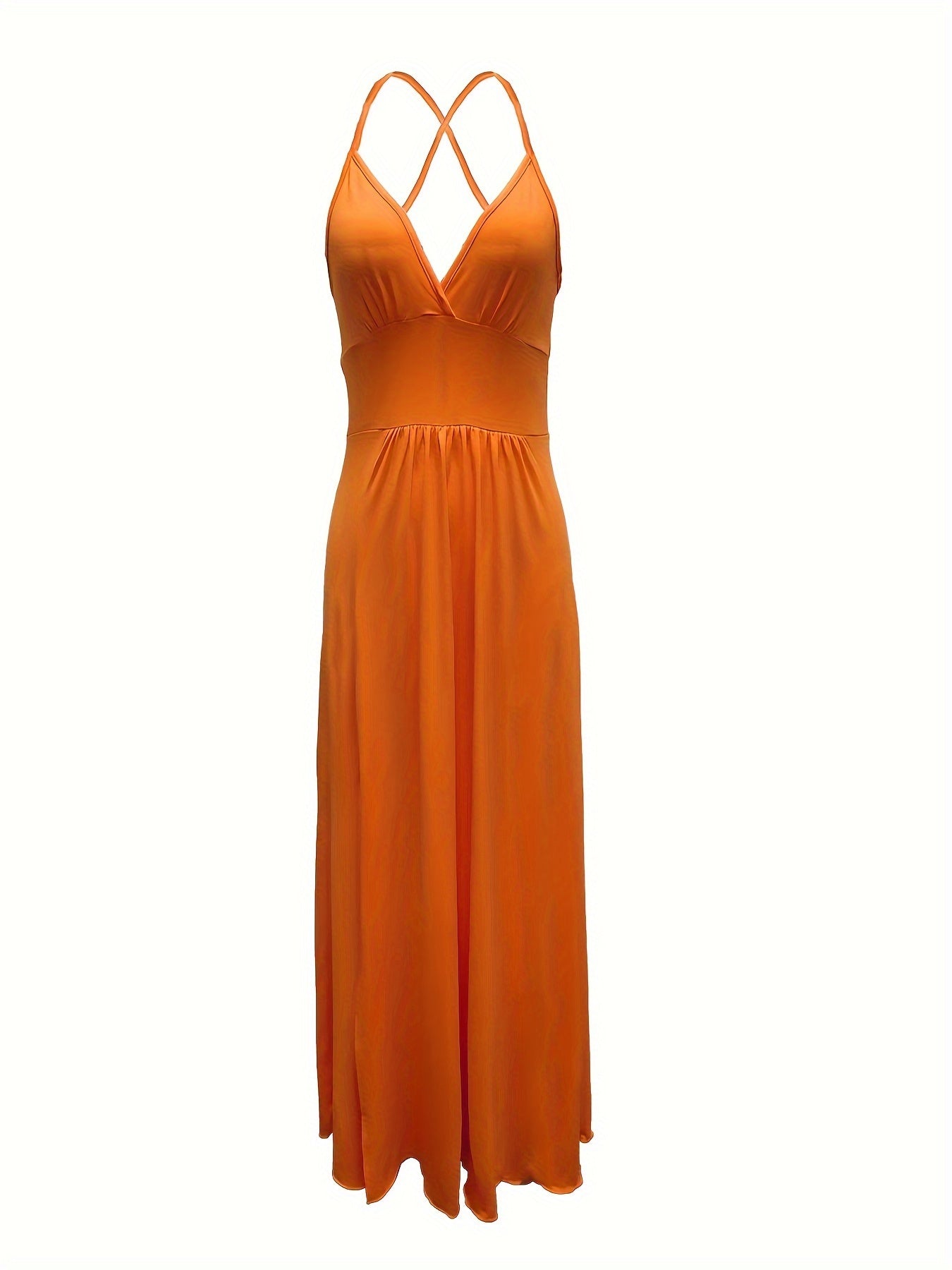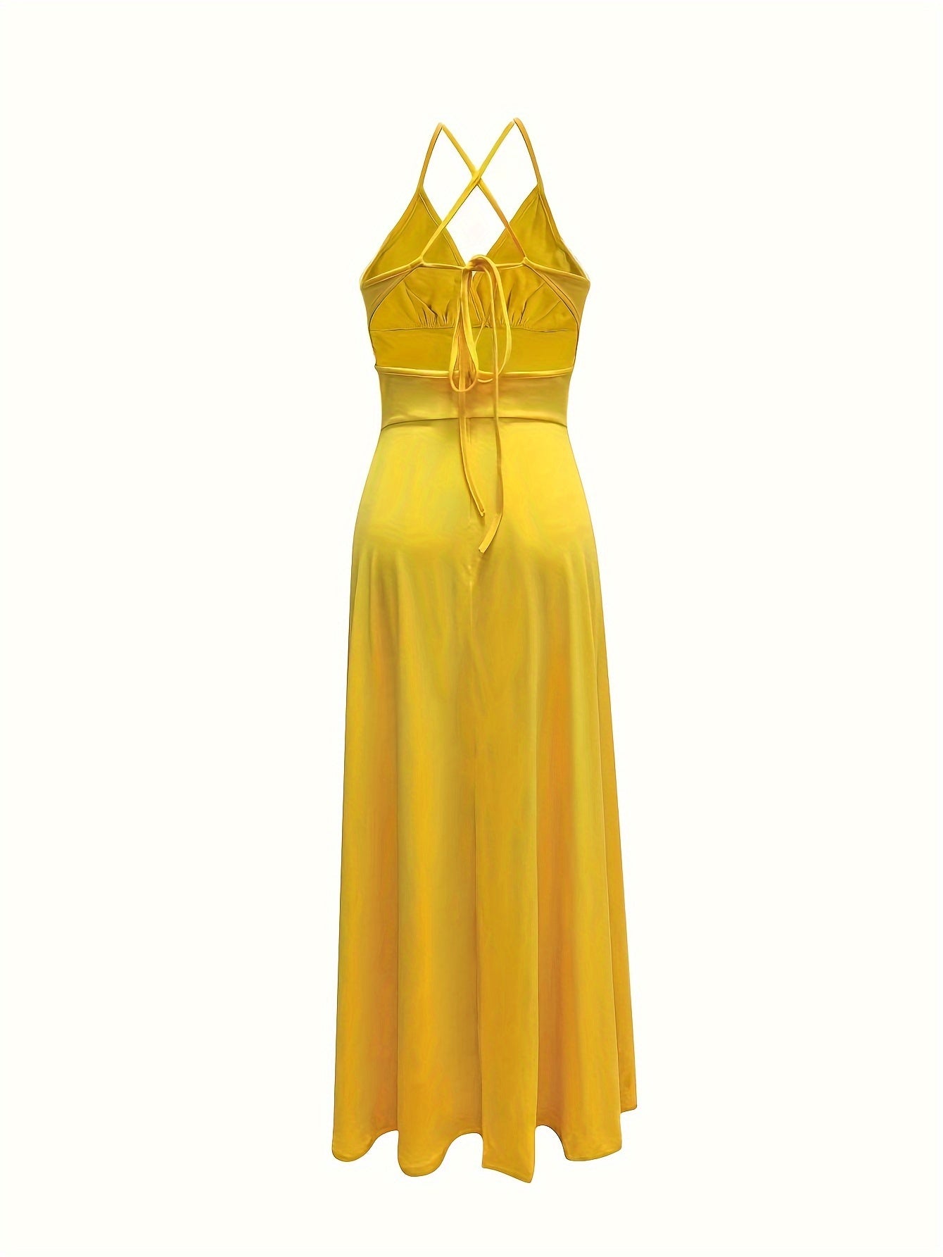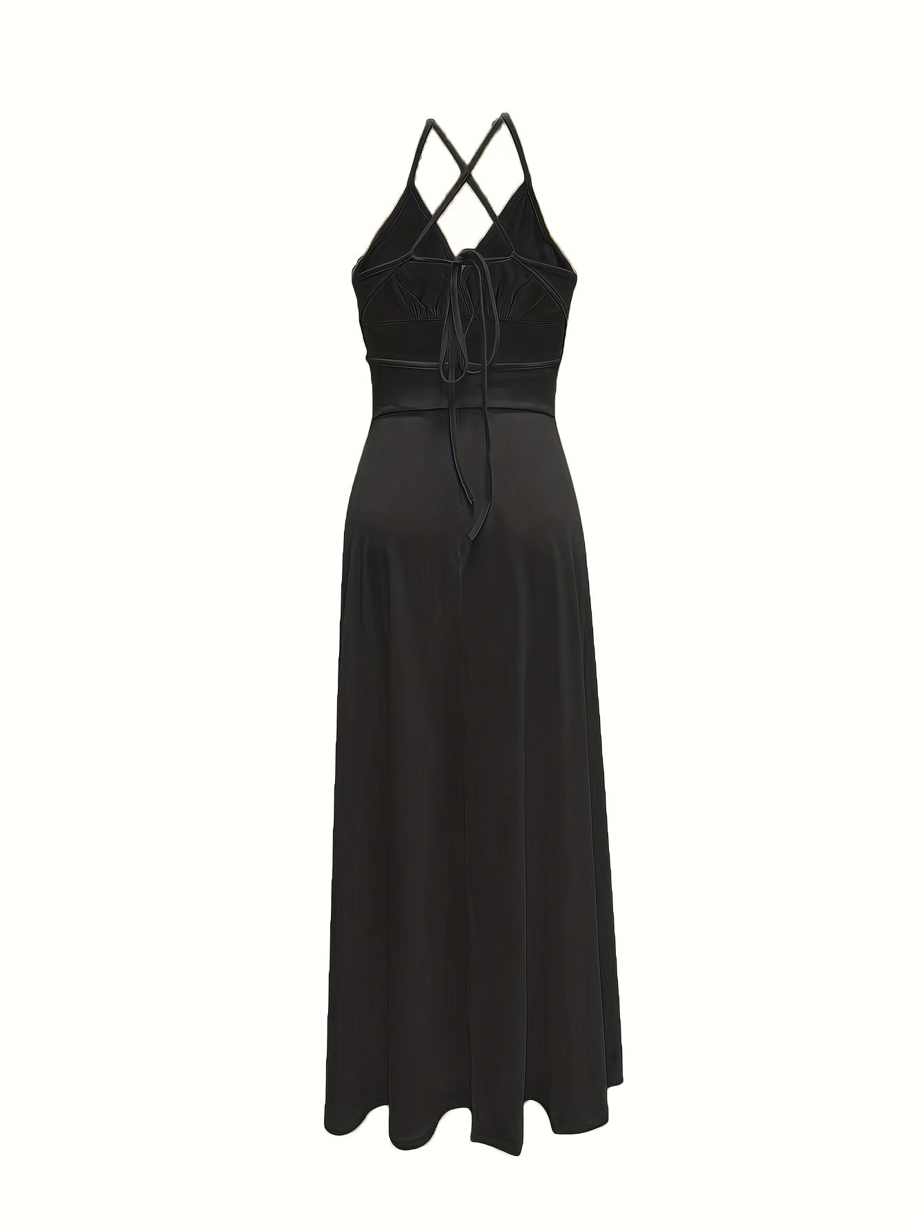 Elegant V-Neck Spaghetti Strap - Sleeveless Backless A-Line Floor-Length Dress
