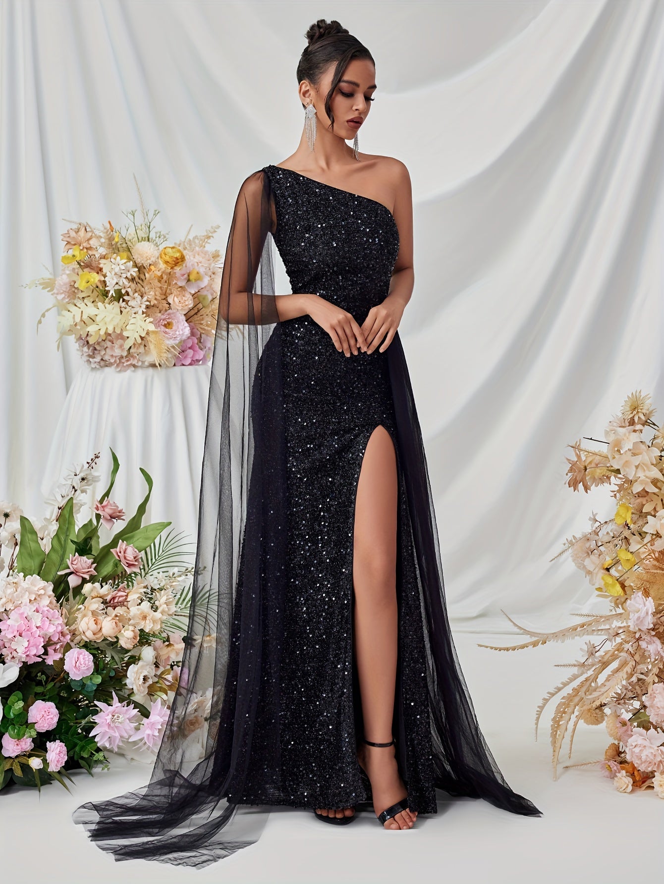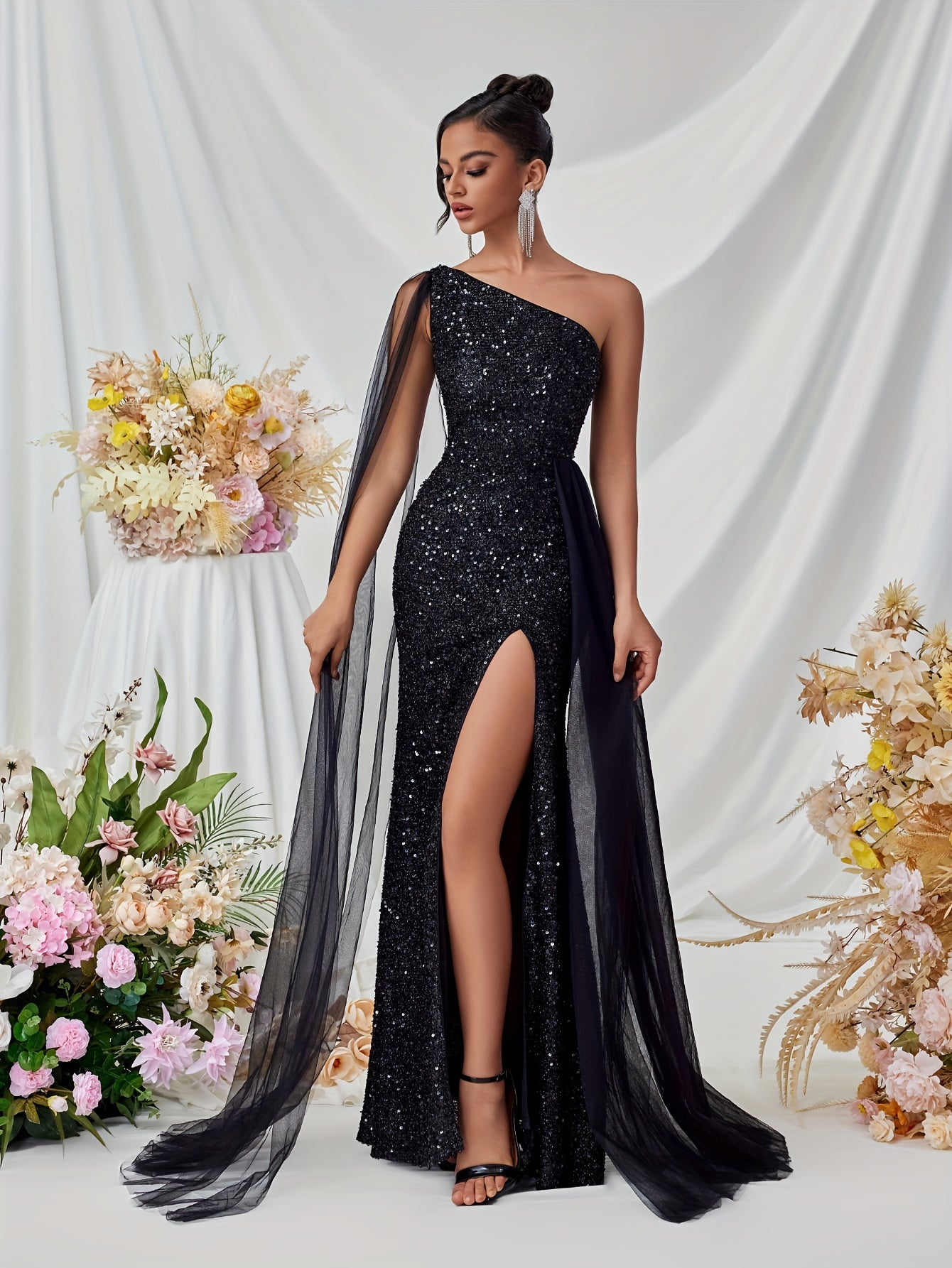 Women's Single Shoulder Long Front Split Formal Evening Gown