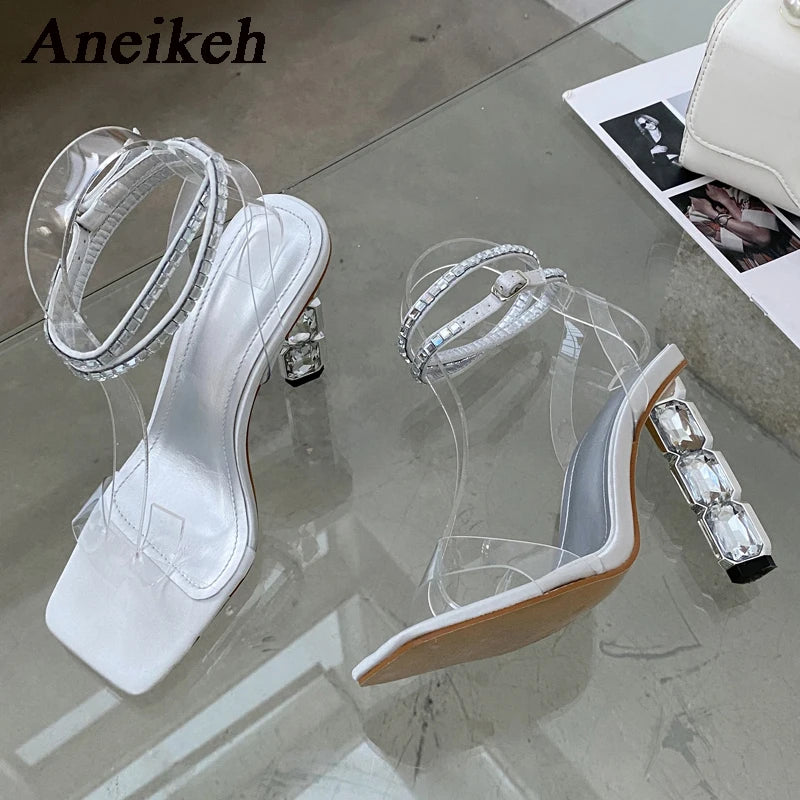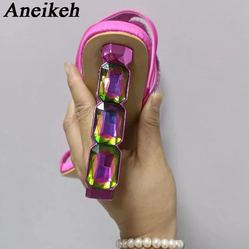 Aneikeh Sexy Sparkly Stacked Crystal Heel Sandals