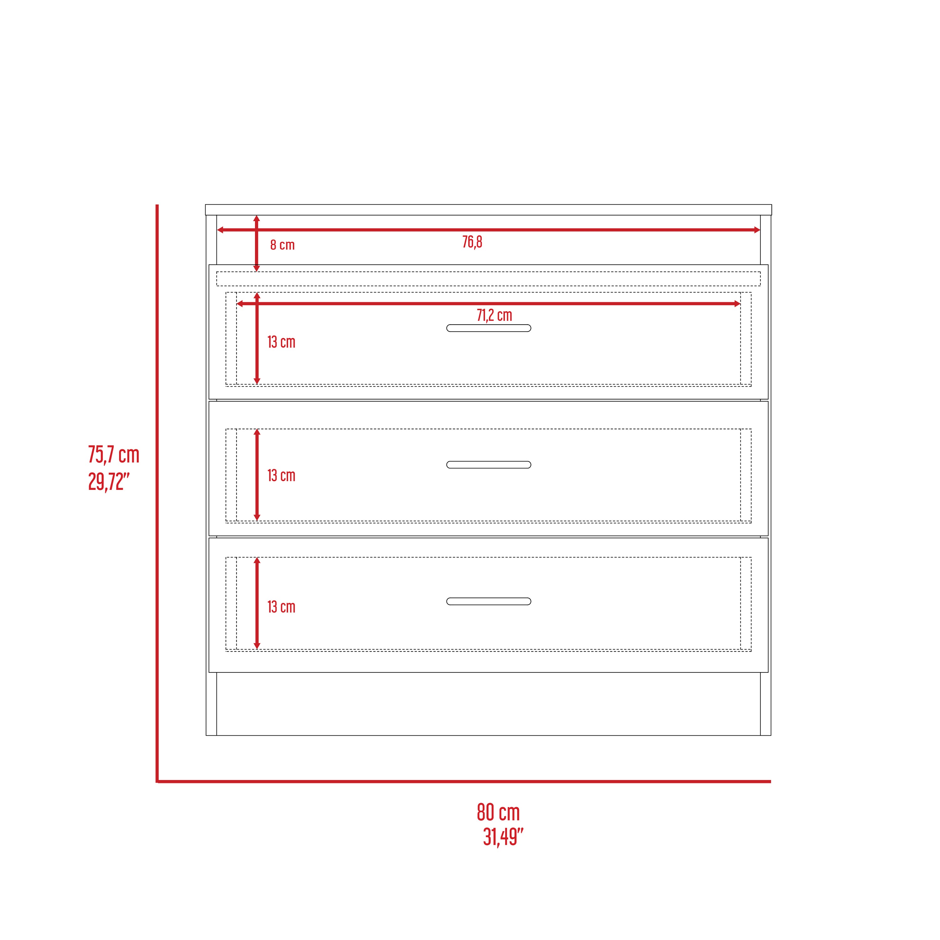 Cambridge Three Drawers Dresser, are you one of those people who can't find a place to put all your stuff and accumulate much clutter all over your room? The Burlington Dresser is perfect for you. It can be placed in your bedroom, your children's room, or even the living room. You will be able to see these spaces much more organized. It has three drawers which you can use to store your accessories, gadgets and many more things. The top of the nightstand can be used to put your favorite ornaments, a lamp, or even a pot to give more freshness to space. If you're worried about where to put it