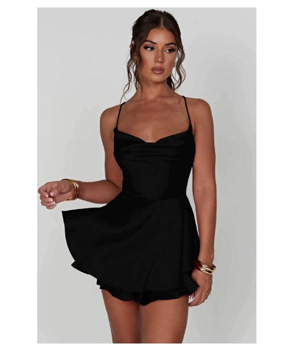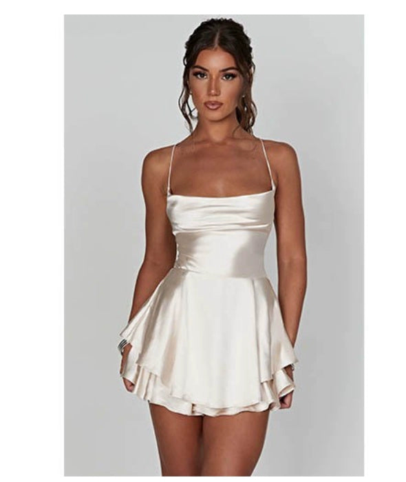 Bare Back Dress Elegant Layered Satin Mini Dress