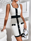 Contrast Trim Fake Button Bodycon Dress