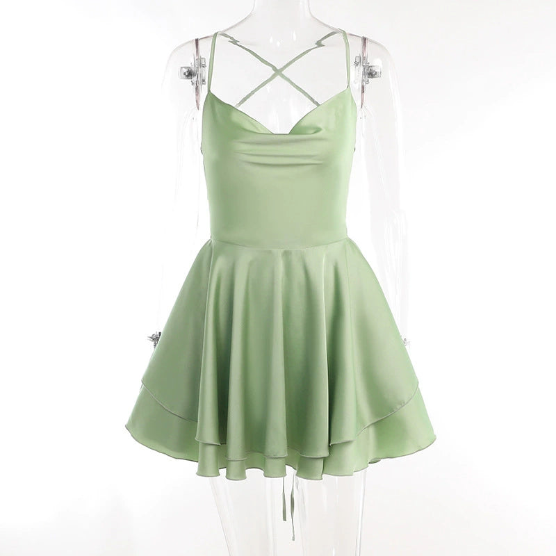 Sexy Thin Cross-Back Strapped Mini Dress