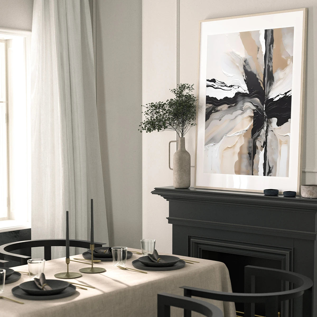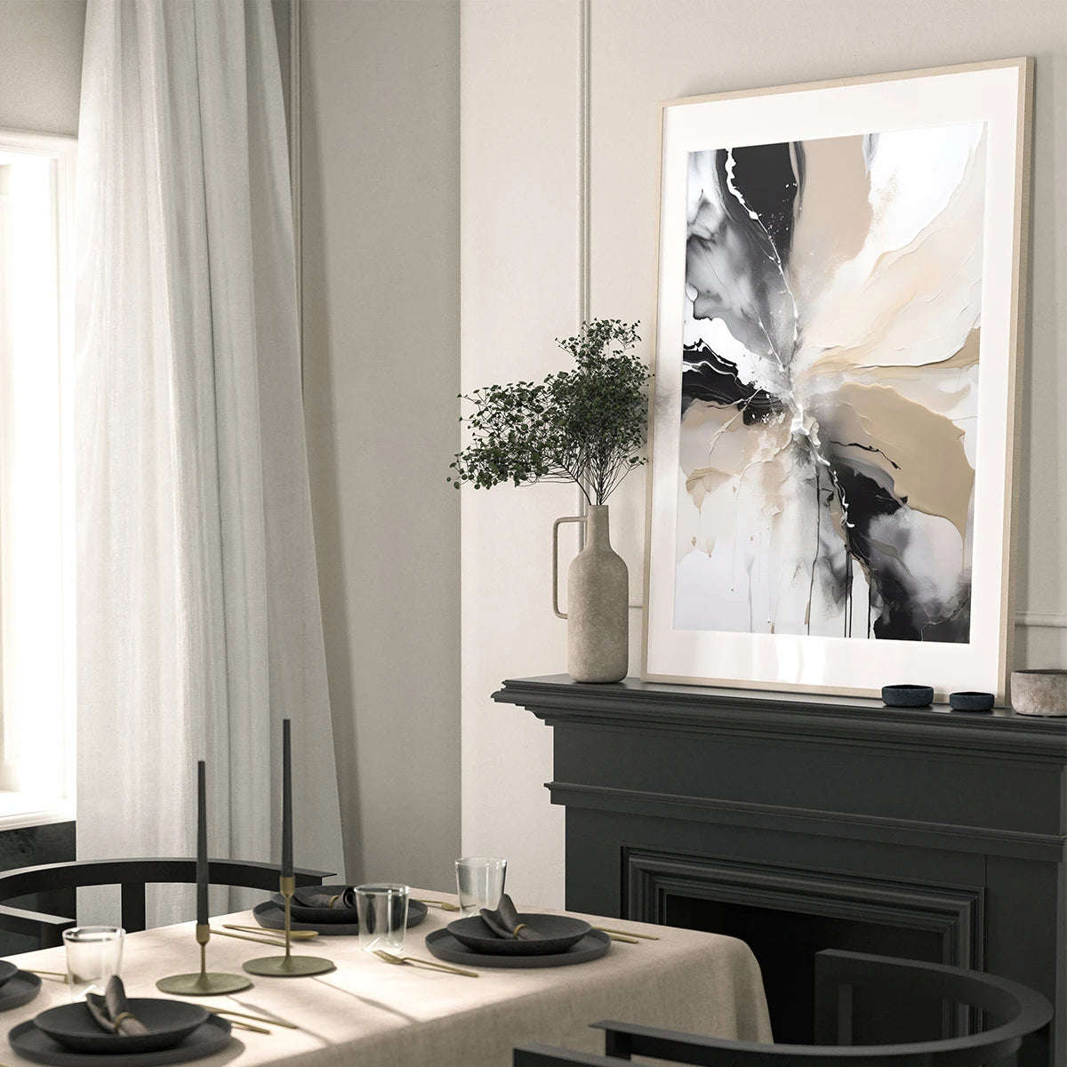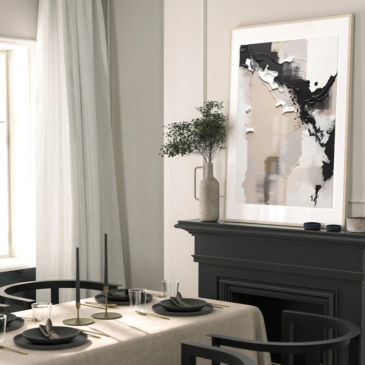 1-3pcs Black Neutral Beige Painted Geometric Abstract Canvas Wall Art