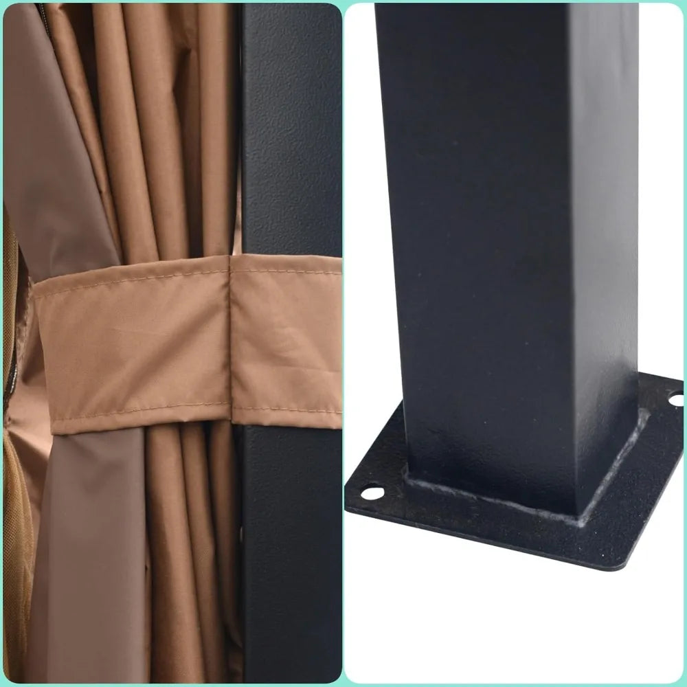 The gazebos' structure features 18x18mm galvanized iron pipes with an additional powder-coated layer for enhanced rust resistance.combination a long-lasting and resilient framework, even in humid or coastal environments.