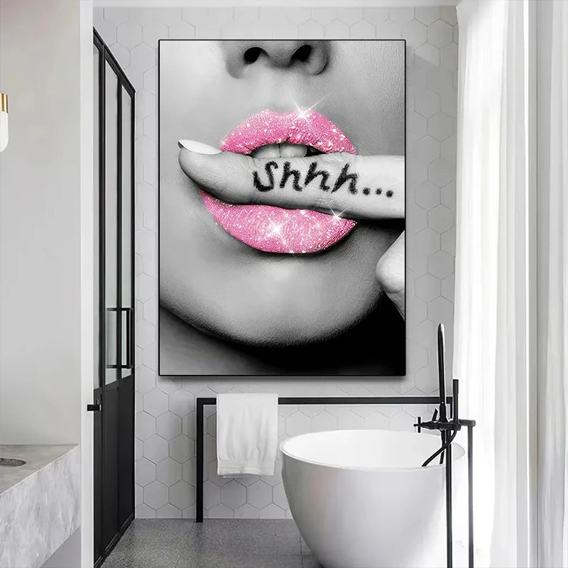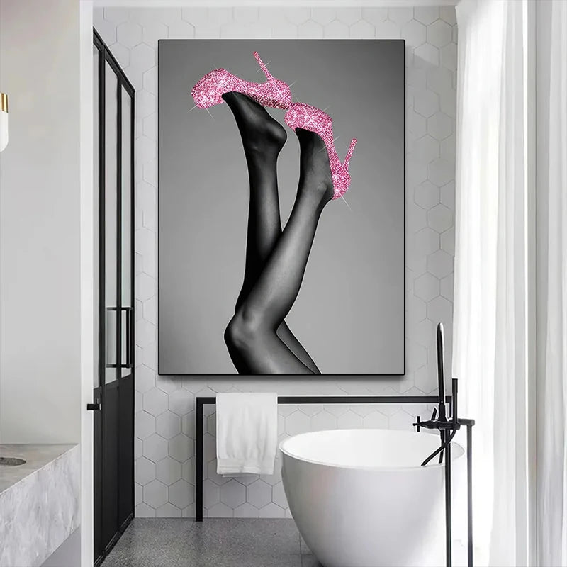 Black and Pink Bathroom Canvas Posters, Frameless