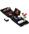 FREE SOAP HOLDER: This classic black bath tray features all you need to de-stress. It comes with 2 detachable spa trays for holding your soaps, luffas, and more; a convenient wine and cup/candle slot to set an ambient atmosphere; as well as a removable and waterproof book/tablet holder so you can catch up on your latest read or favorite TV show.
