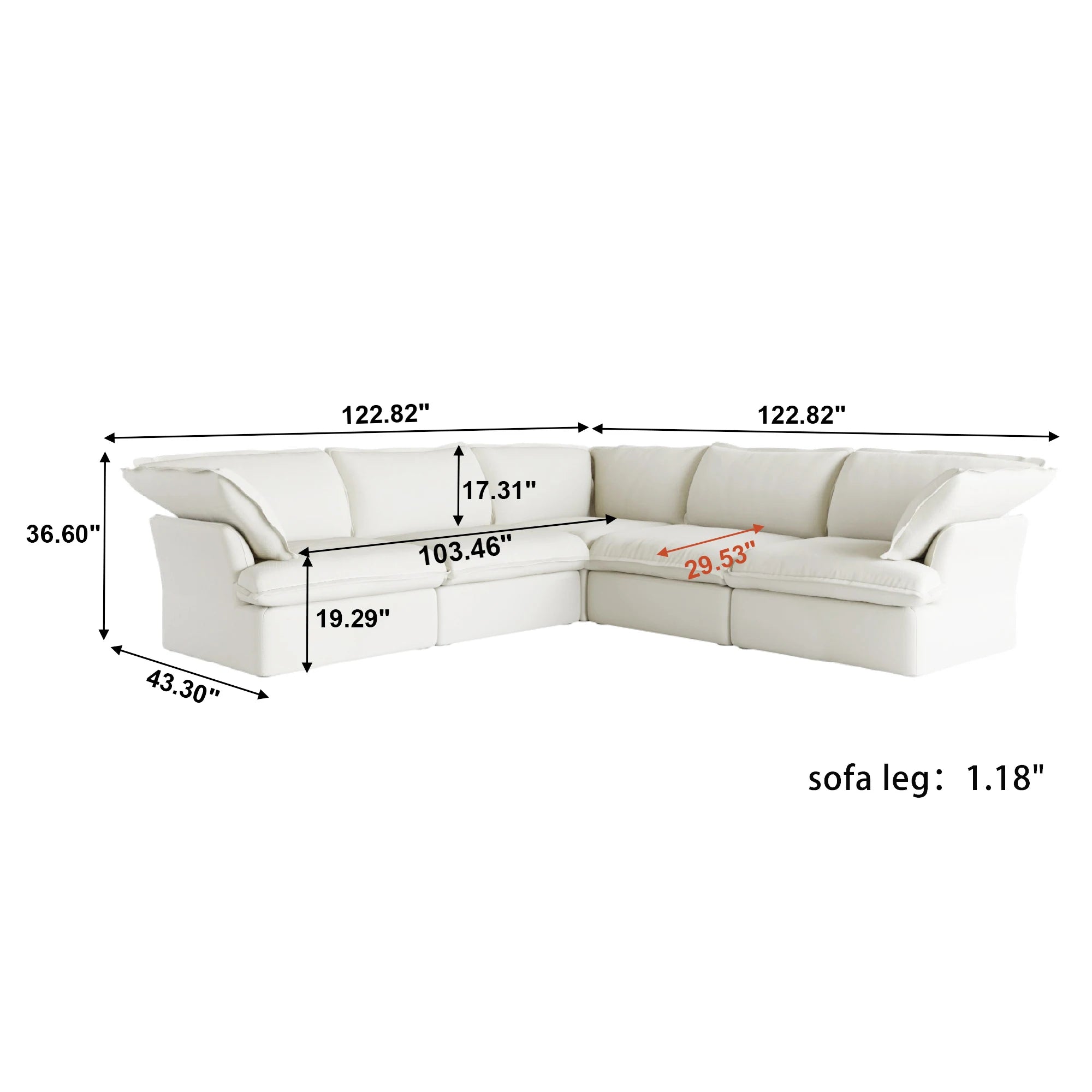 L-Shape Corner Sectional Sofa Breathable Linen, Down Filled