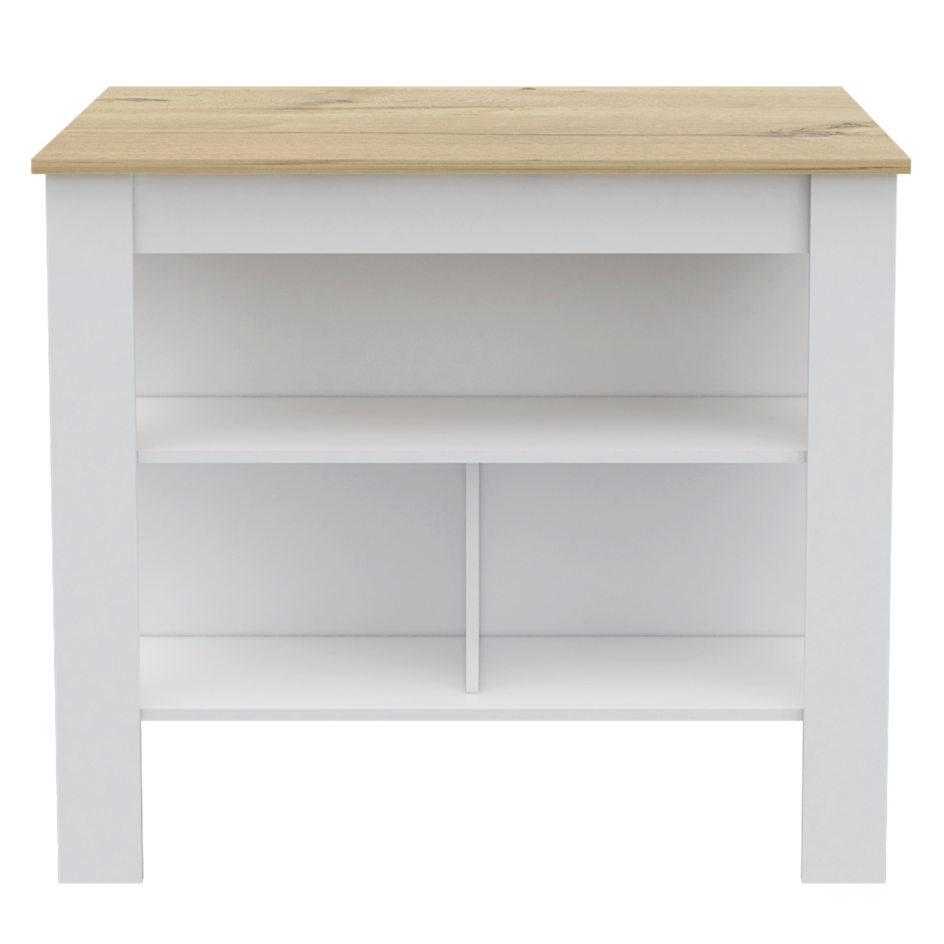 This stylish island is perfect for any kitchen, with a large top surface (40,5 "W X 27,5 "D) perfect for meal prep or entertaining. The white-light oak finish is easy to care for and will make your kitchen look its best. The modern style impresses your guests, and the three spacious lower shelves provide plenty of storage space.
