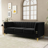 The luxury green velvet couches for living room in mid-century modern style with waterfall stitched back and armrest shapes, chunky gold metal legs, and low front and high back armrests brings a touch of classic minimalism to your home. The spacious 3 seater green velvet sofa comes with two fluffy removable seat cushions. The 6.1" thick seat cushions are filled with high resilient density foam and pocket springs, which are soft and firm and rebound quickly for a long sitting without fatigue. The seat depth is 21.85 inches, providing supportive comfort for your thighs. Selected breathable and skin-friendly velvet fabric with soft and delicate surface and excellent touch. The gold metal legs and eucalyptus frame provide stability and long-lasting durability to the sofa. Chesterfield emerald green sofa comes in 2 packages, package 1 (45.35KG) contains the seat frame and package 2 (7.85KG) contains two seat cushions (foam + pocketed spring coils). There are screws and other accessories inside, it's easy to assemble, enjoy it with your family.