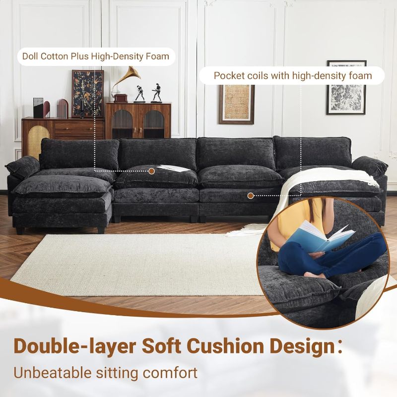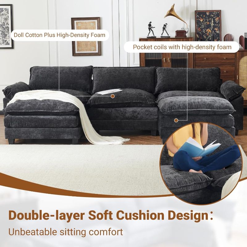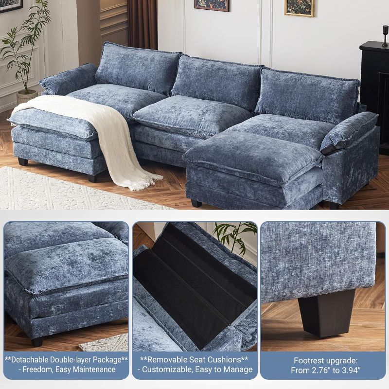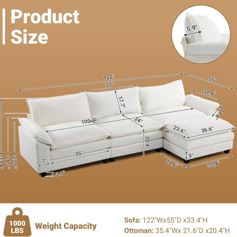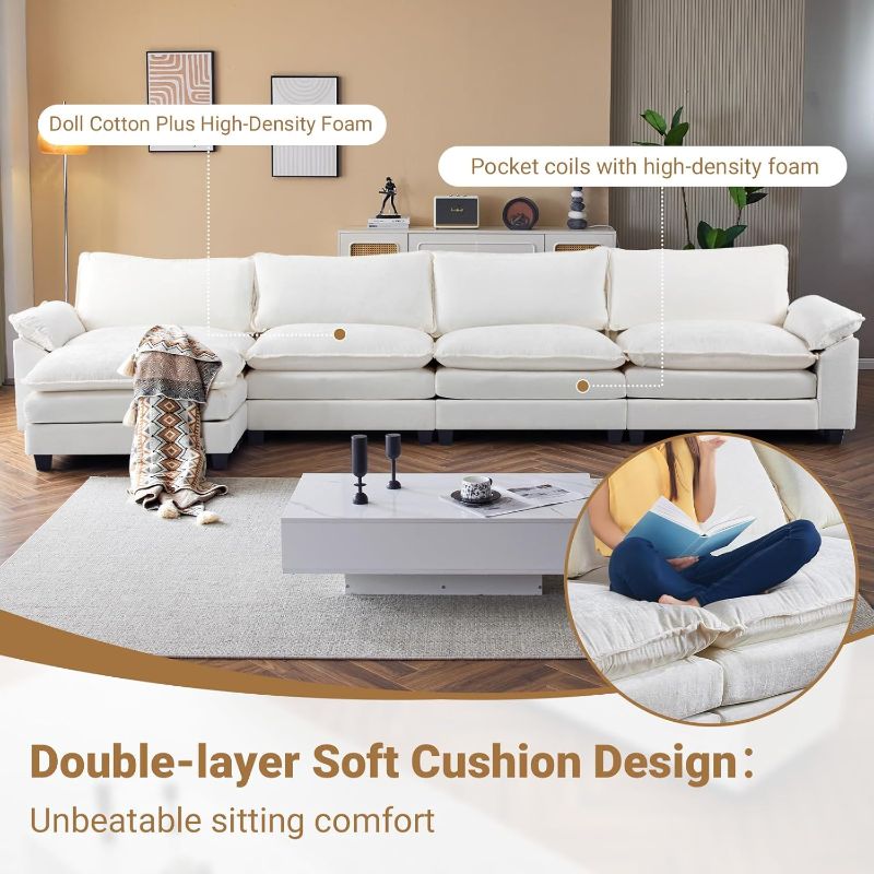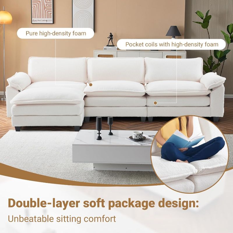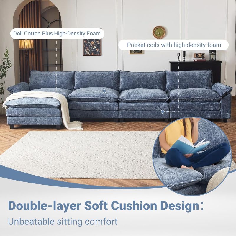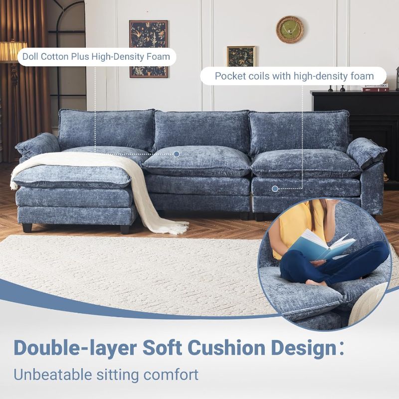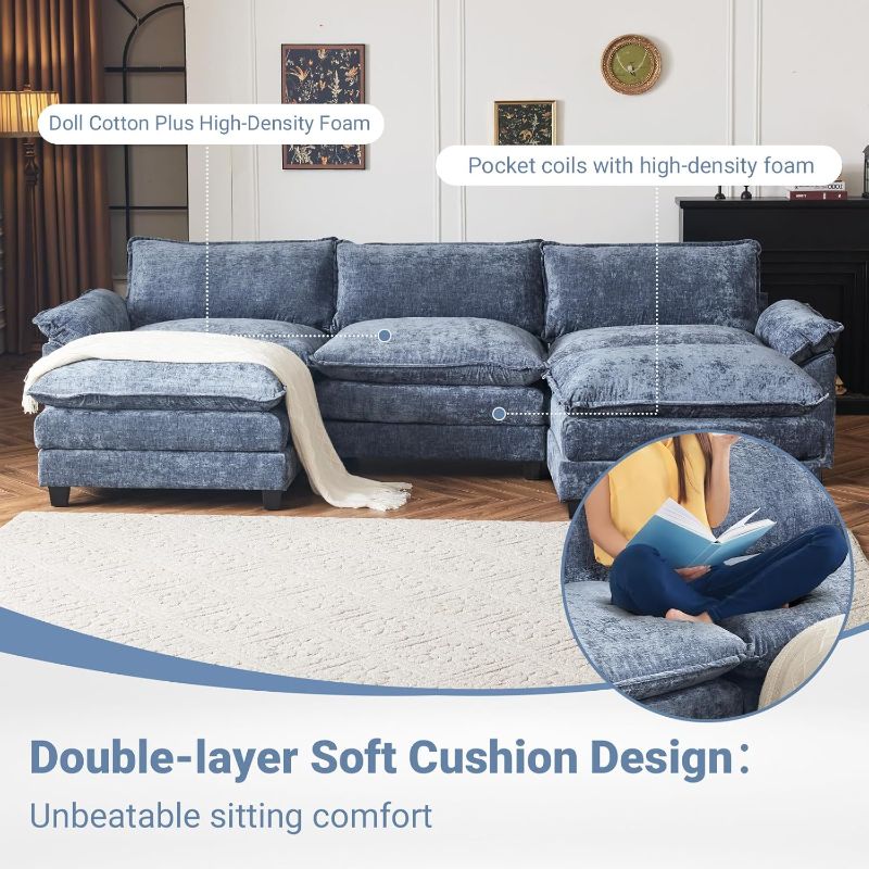 VINGLI Double-Layer Deep Convertible L-Shape Sectional Sofa with Movable Ottoman