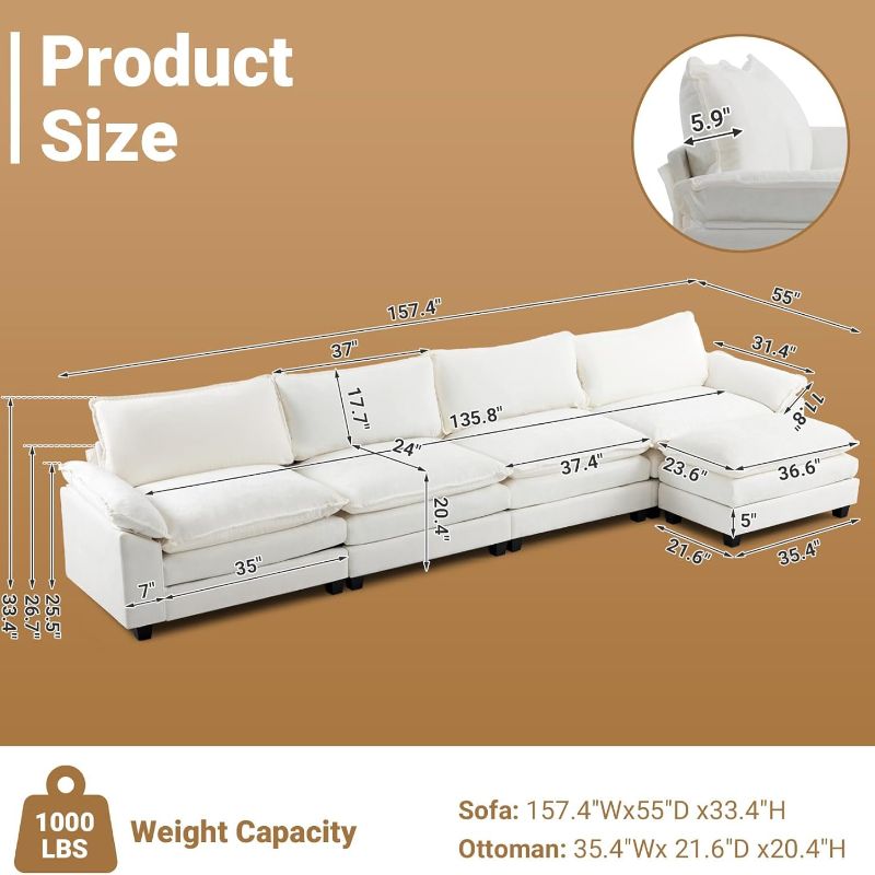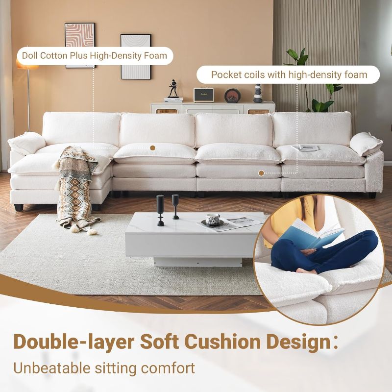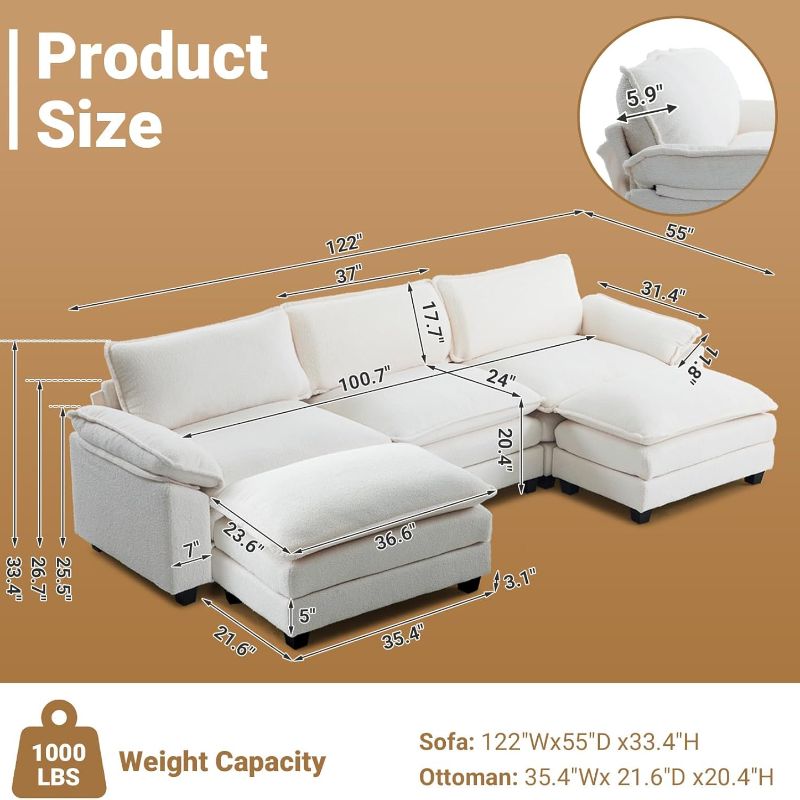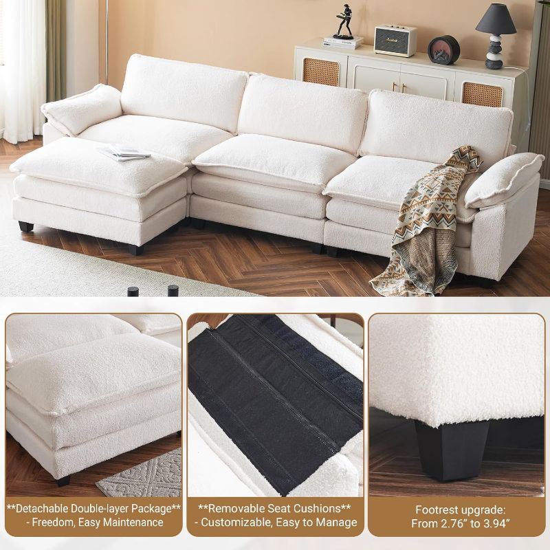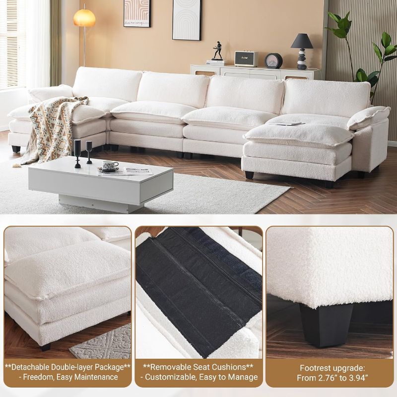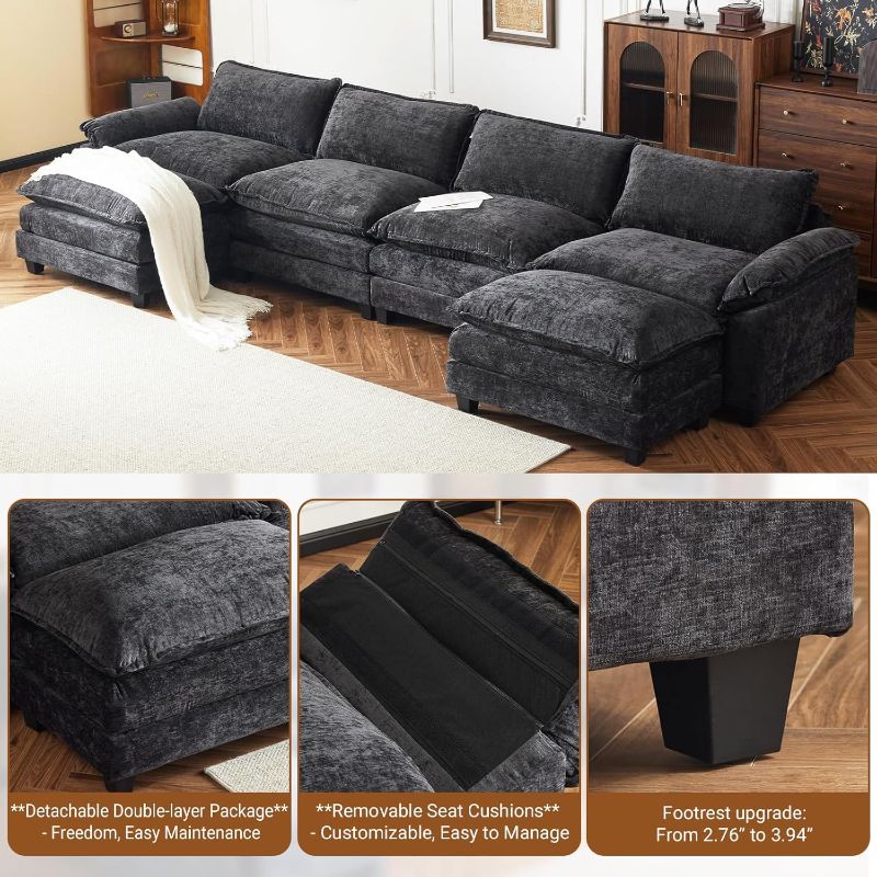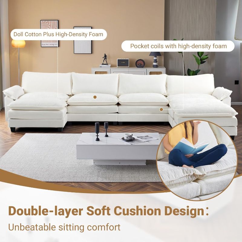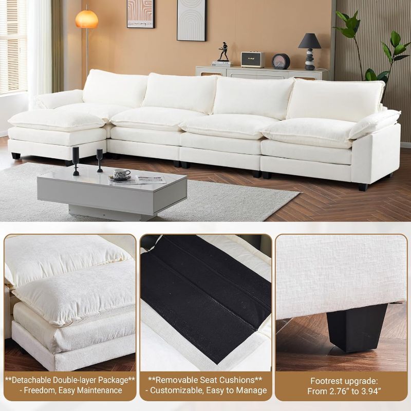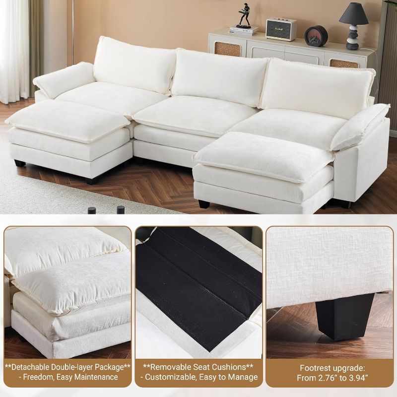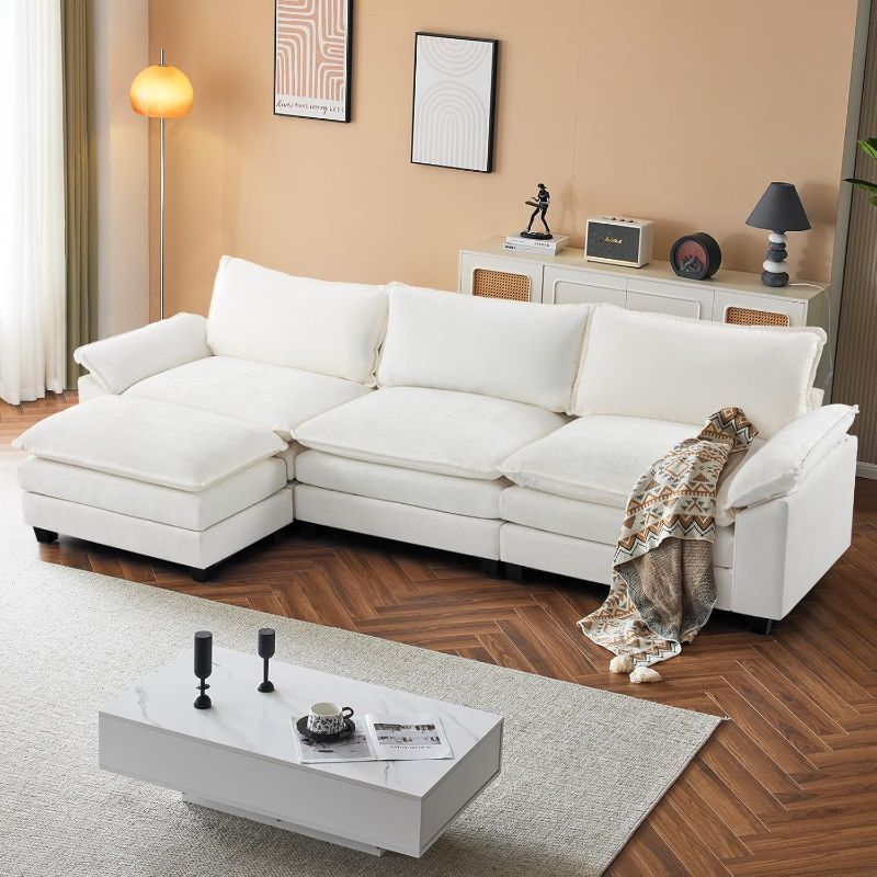 VINGLI Double-Layer Deep Convertible L-Shape Sectional Sofa with Movable Ottoman