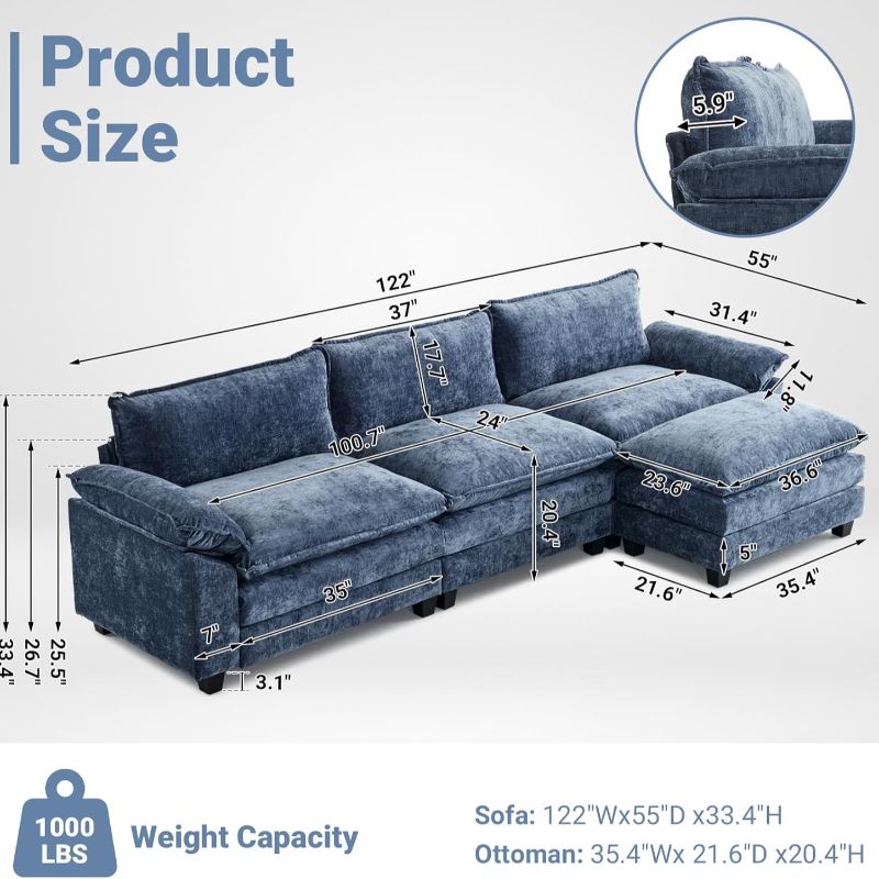 · Versatile Ottoman: This feature adds flexibility to your seating arrangement. It can serve as a footrest, an extra seat, or even a coffee table when paired with a tray. Its portability allows you to rearrange it according to your needs and preferences.