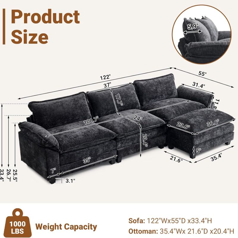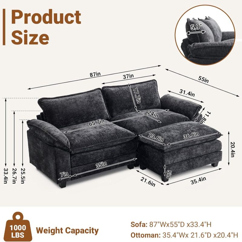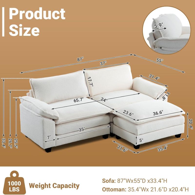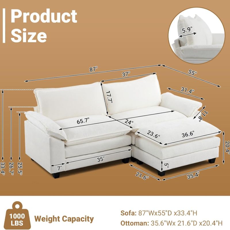 · Premium Quality Materials: Built with top-grade materials, this ottoman loveseat is designed for durability and to withstand daily wear and tear. From its robust frame to its high-quality foam cushions, everything is designed to last and offer years of satisfaction.