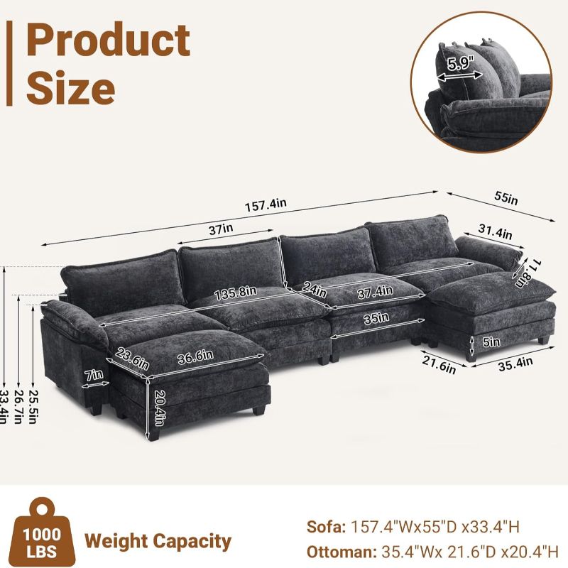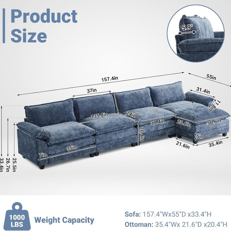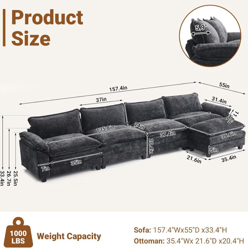 · Abundant Seating Capacity: The large design of our sofa provides plenty of seating space for you and your family or guests. It's the perfect piece of furniture for hosting events or spending quality time with family, offering everyone a comfortable spot on this generous couch.