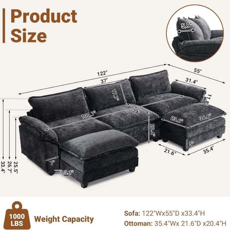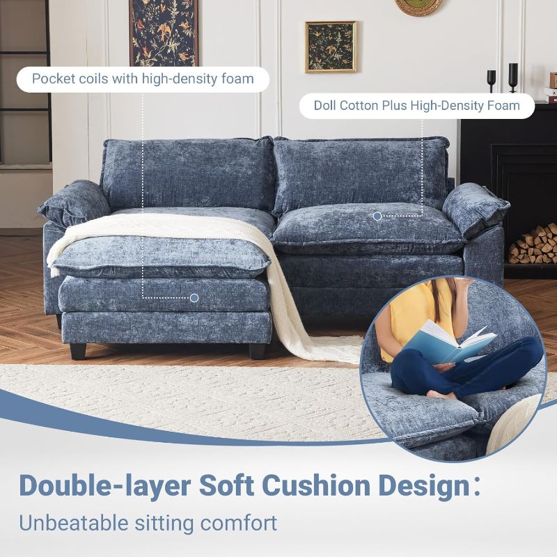 · Unmatched Comfort: Our compact sectional sofa has been designed to deliver the highest levels of comfort, thanks to its soft and deep cushions. The dual-layer seat cushions offer a soft yet supportive feel, akin to being enveloped in a cloud, making it the ideal spot for relaxation and unwinding.