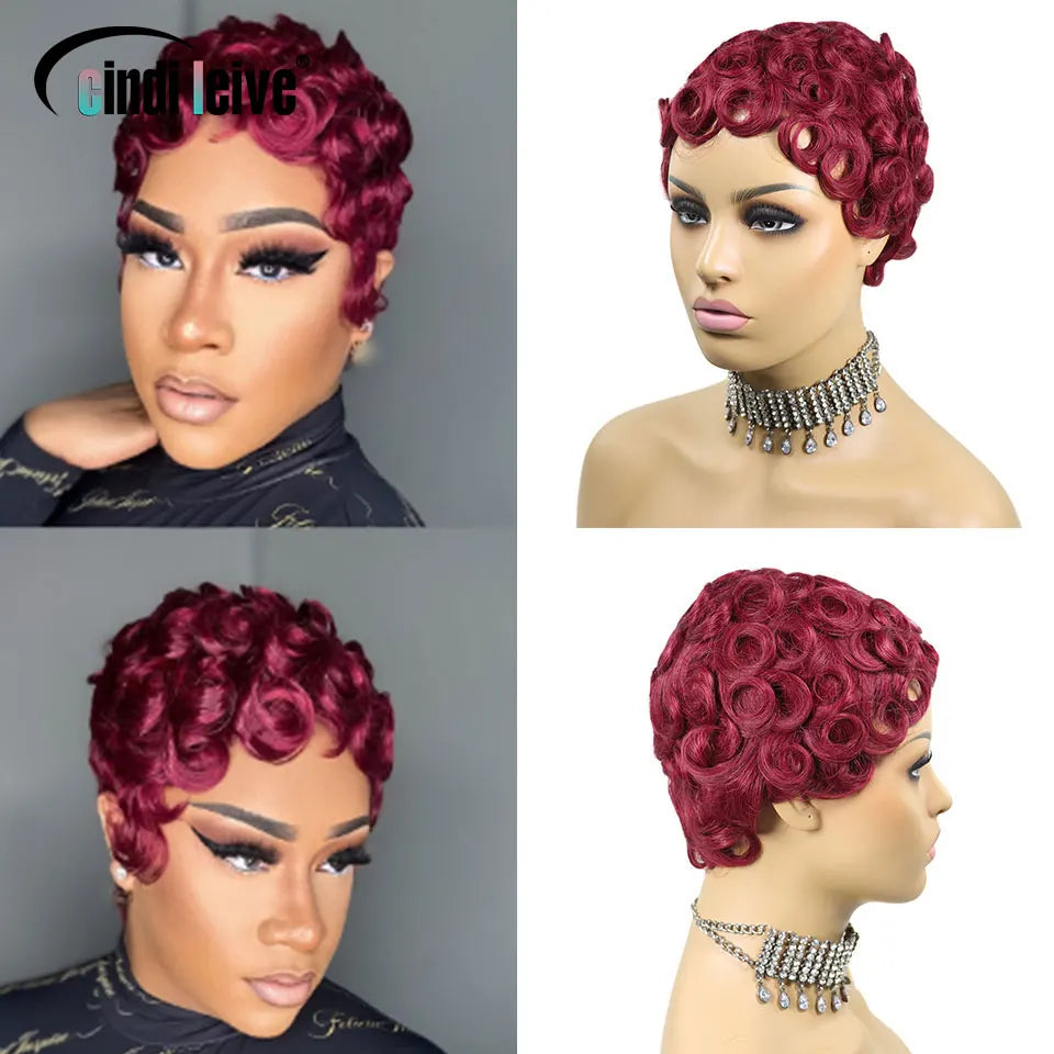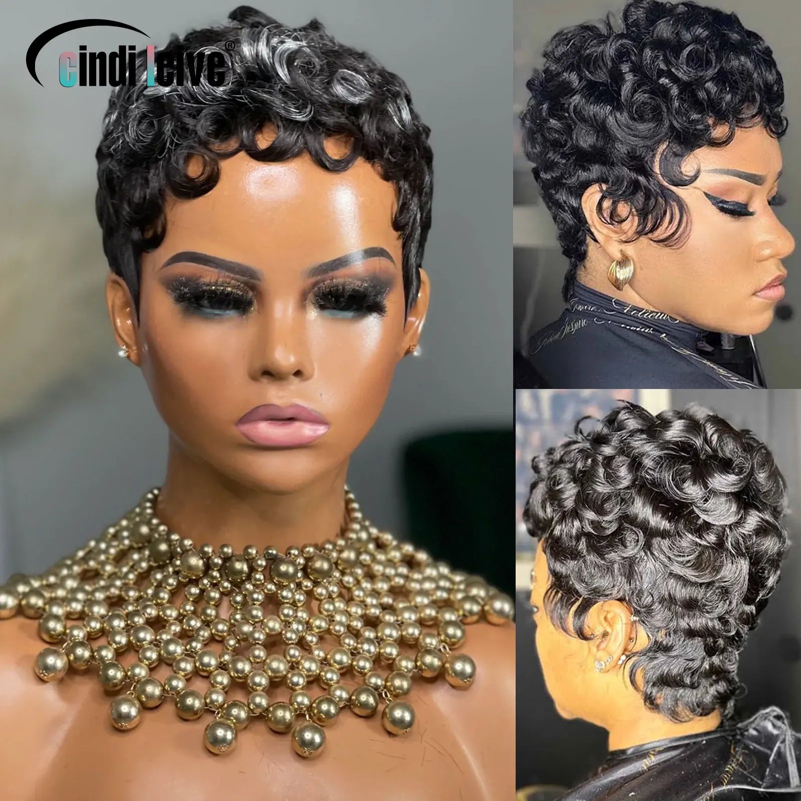 Curly Pixie Cut Short Glueless Peruvian Remy Human Hair