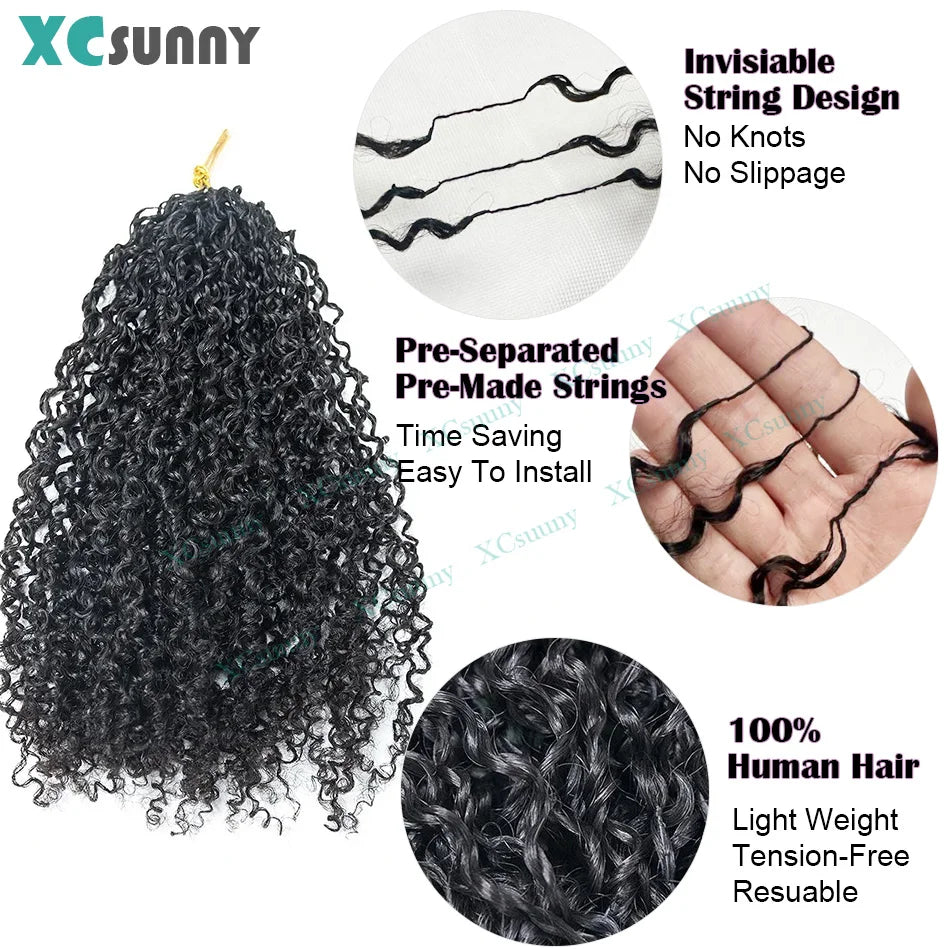 Crochet Human Hair Kinky Curly Invisible Knots Pre Separated Crochet Human Hair Extensions Knotless With String For Black Women