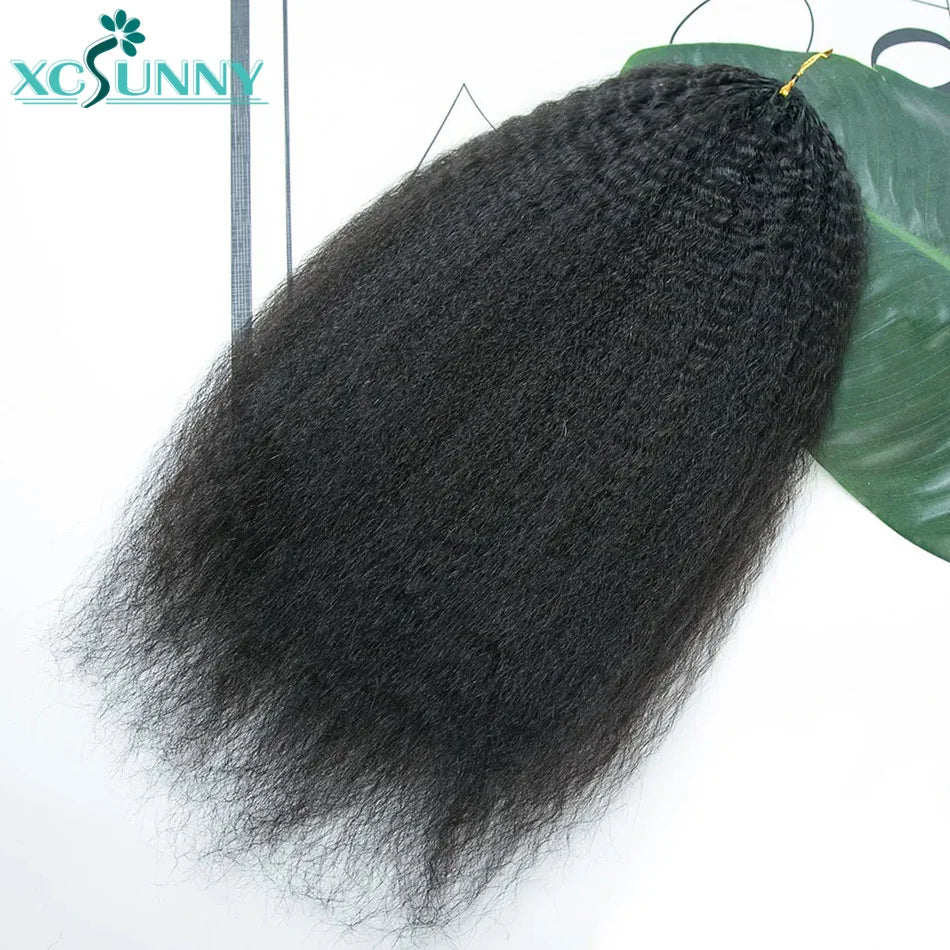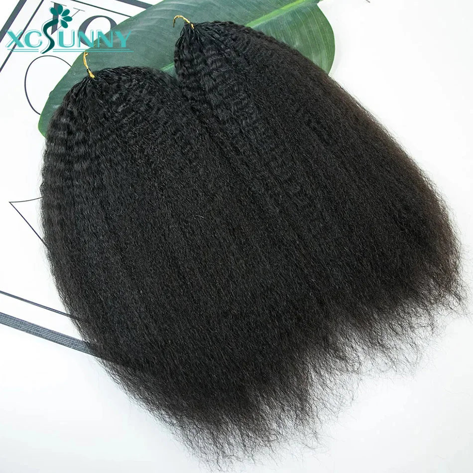 Human Hair Kinky Straight Pre-Separated Invisible Hair Extensions With String For Braids