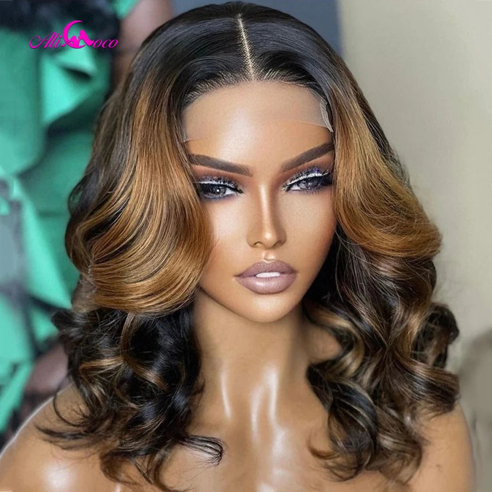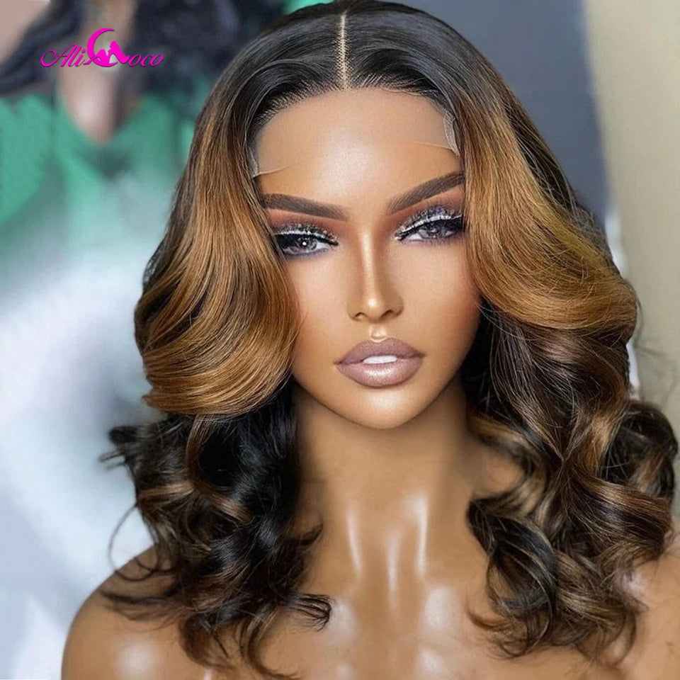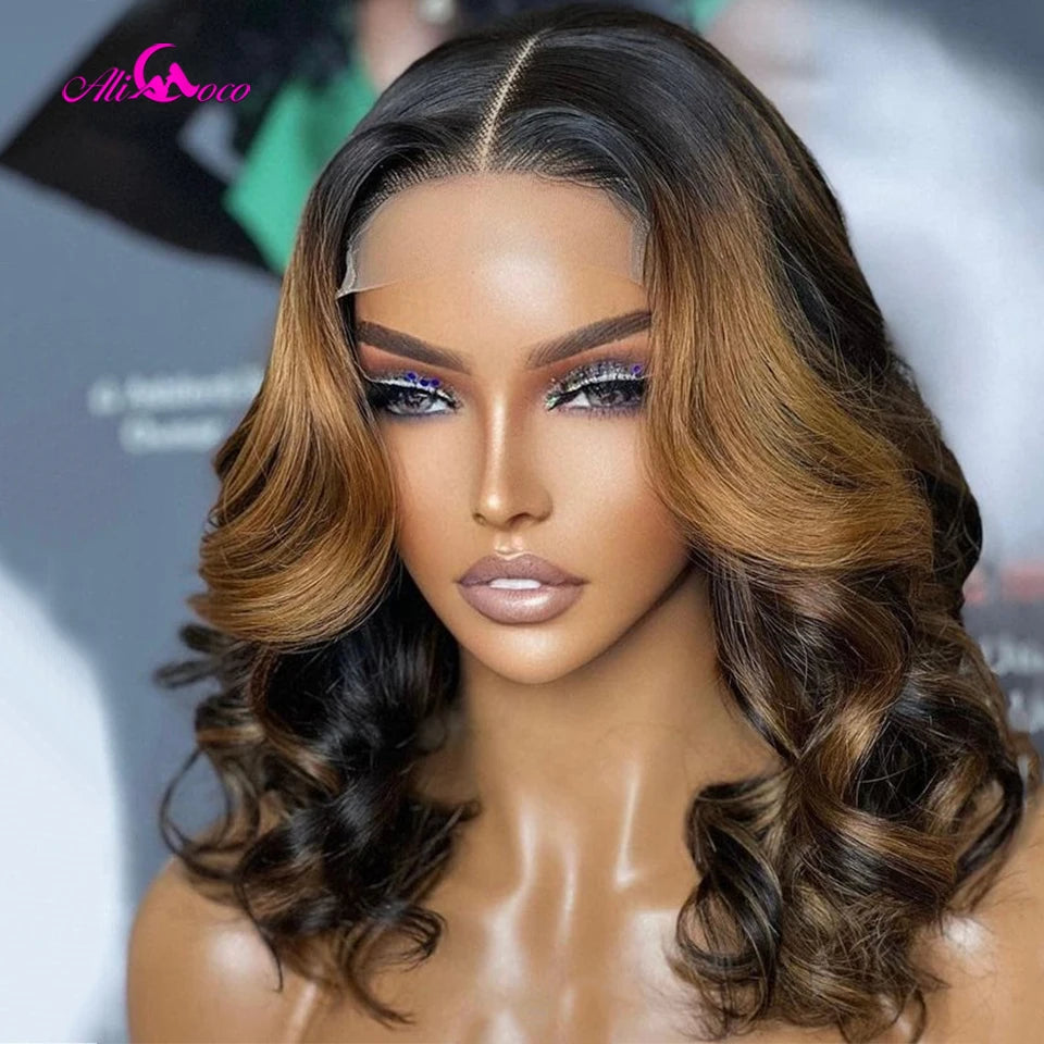Highlight Brown Body Wave Bob Wigs 13x4 Lace Front Wigs Transparent Lace Frontal Short Bob Wigs Human Hair Wigs For Women