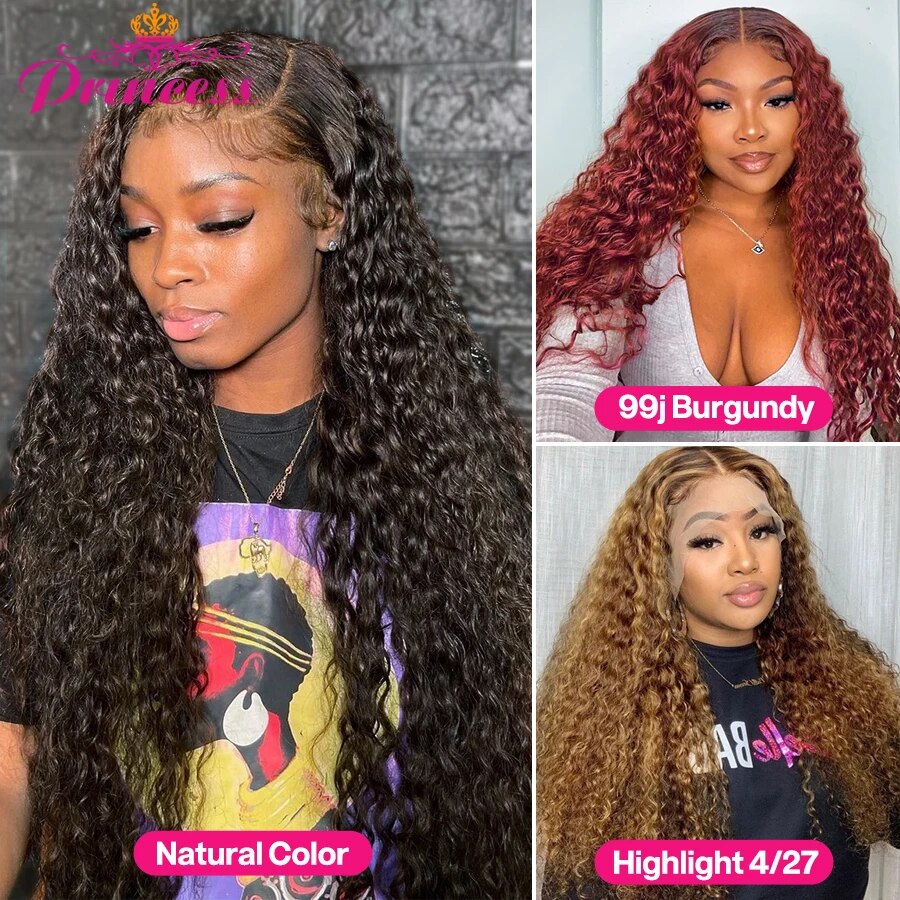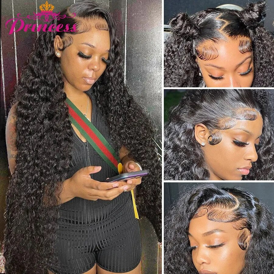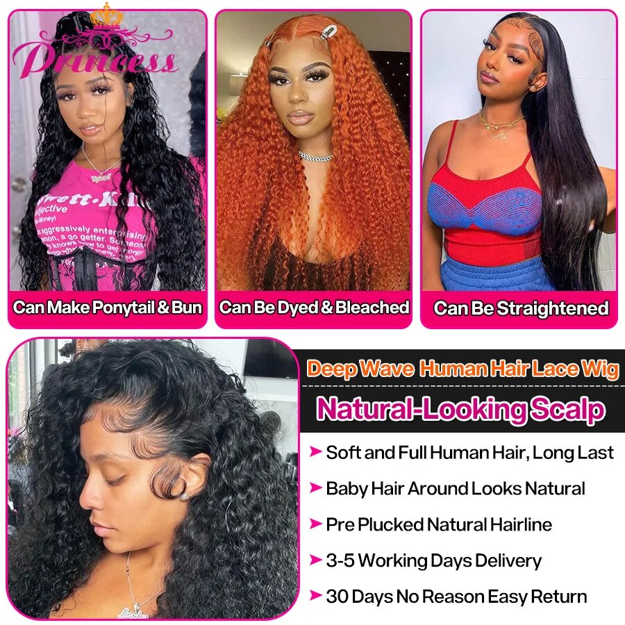 Princess - HD Transparent Lace Front Pre-Plucked Brazilian Deep Wave Wig with Baby Hair Human Hair Wigs